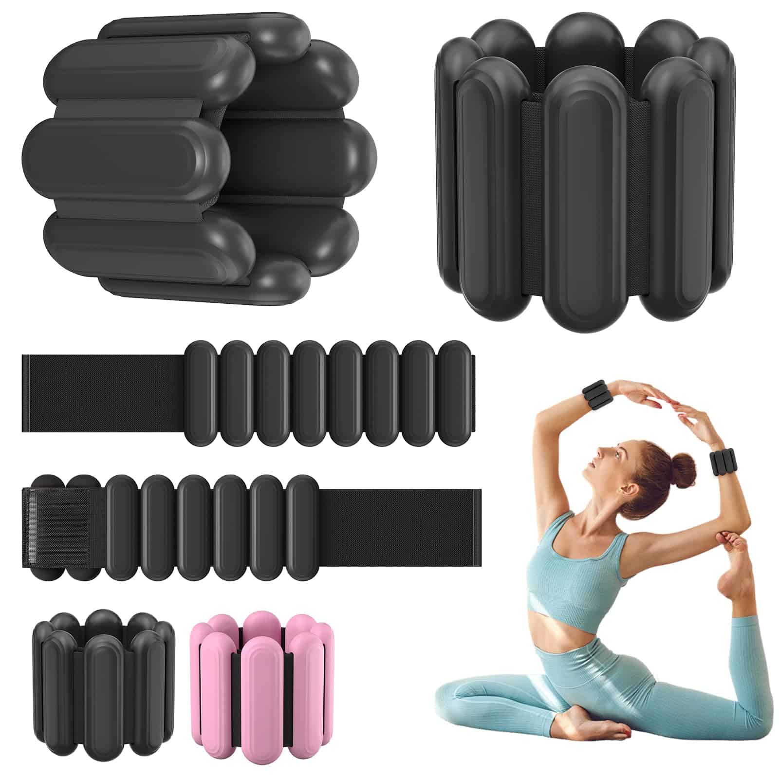 6. NOTA: ¡Recibirás un par (2 piezas) de bloques de peso de muñeca portátiles con un peso total de dos libras, no dos libras por bloque de peso de muñeca portátil!