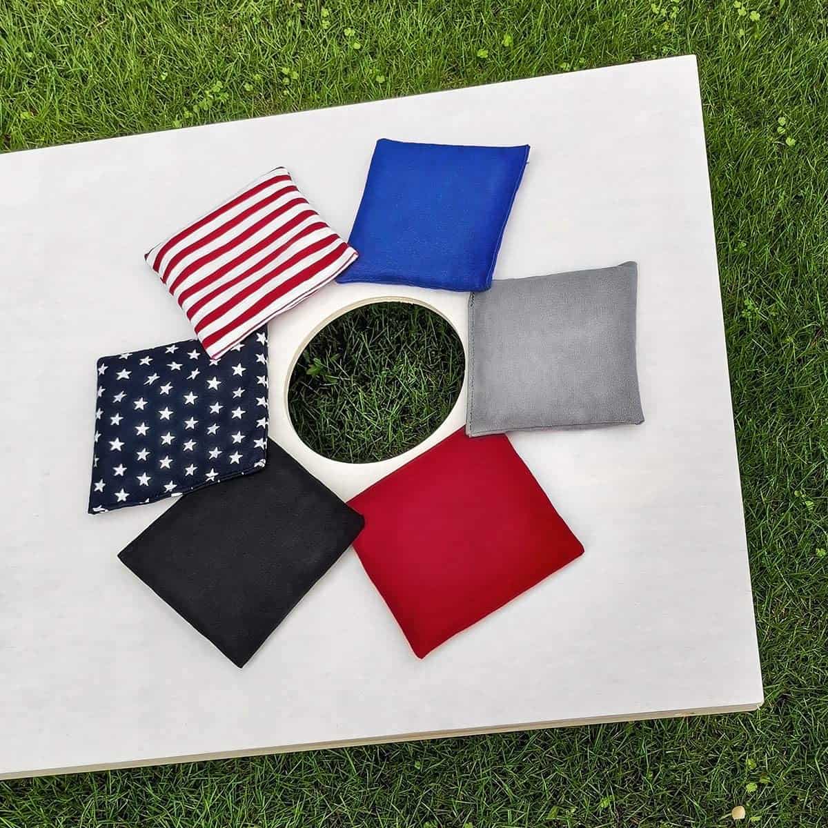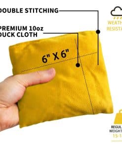1. TAMAÑO Y PESO DE REGULACIÓN: Juego profesional de bolsas de maíz para cornhole de 8, cada una mide 6″x6″ y pesan de 14 a 16 onzas, lo cual es de tamaño y peso tradicional, ofreciéndote un tacto cómodo y un agarre firme. Viene con una bolsa GRATIS para almacenaje y transporte fácil.