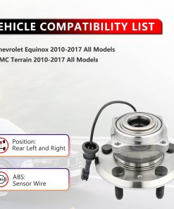 2. Compatibilidad- Ensamble de Cojinete de Cubo de Rueda Trasera Izquierda o Derecha Compatible con Chevrolet Equinox 2010-2017 Todos los Modelos.