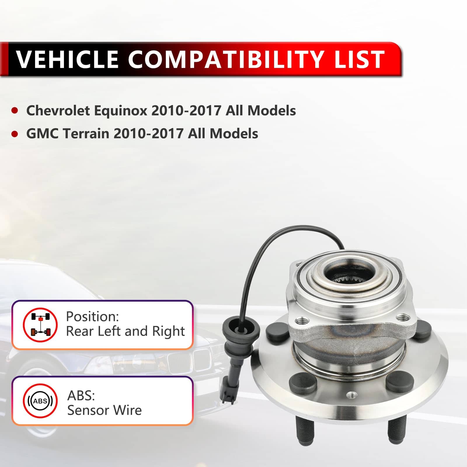 3. Compatibilidad- Ensamble de Cojinete de Cubo de Rueda Trasera Izquierda o Derecha Compatible con GMC Terrain 2010-2017 Todos los Modelos.