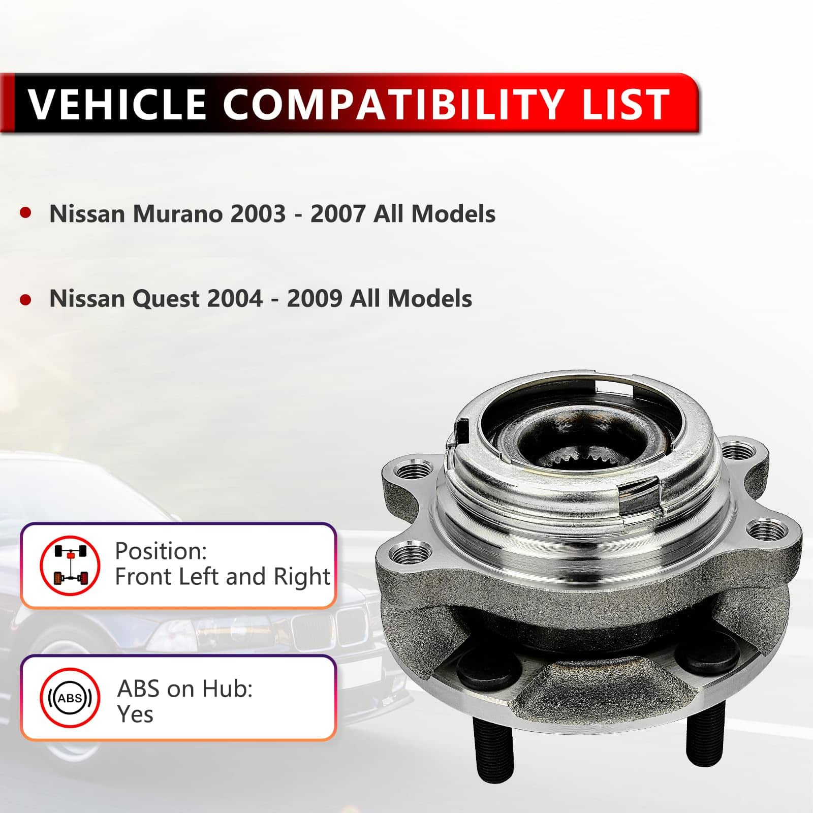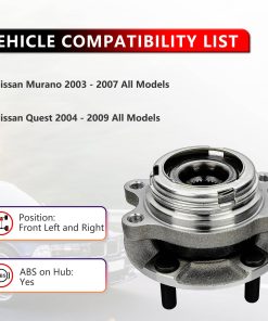 3. Compatibilidad – Conjunto de Cubo de Rueda Delantera de Repuesto Compatible con Nissan Quest 2004 – 2009 Todos los Modelos.