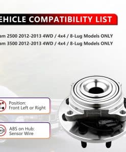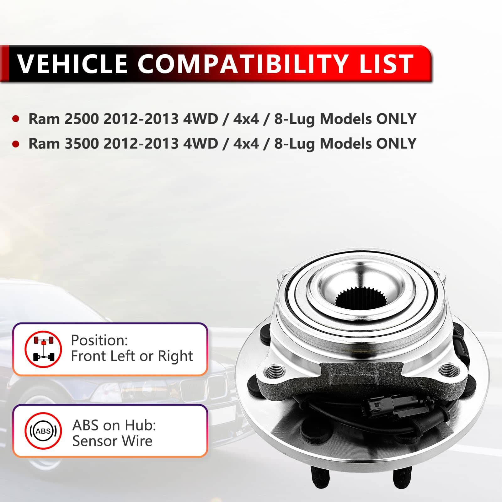 2. Compatibilidad- Ensamblaje de Cojinete de Cubo de Rueda Delantera para Ram 2500 2012-2013 4WD / 4×4 / Modelos de 8 birlos SOLAMENTE.