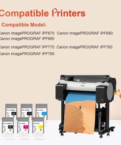 Reemplazo para Canon Image Prograf iPF670 IPF 670 MFP L 24 IPF 670 Series iPF770, IPF 770 L 36 IPF 770 M 40 IPF 770 MFP IPF 770 Series IPF 680 IPF 680 Series IPF 685 IPF 780 IPF 780 M 40 IPF 780 MFP IPF 780 Series IPF 785 IPF 785 M 40 IPF 785 MFP. Produzca impresiones vívidas y fieles a la realidad. Coincida o exceda la especificación original en color, PH, tensión superficial y viscosidad. El color es mucho más preciso y brillante. La tinta de pigmento está diseñada para prevenir la corrosión y obstrucción de la cabeza de impresión y ofrecer la mejor confiabilidad de impresión. Con tinta de alta pureza, no obstruiría la cabeza de impresión. Las tintas de pigmento son impermeables y resistentes a la luz y no se desvanecen incluso cuando se exponen al exterior, lo que permite que las impresiones duren el tiempo suficiente. Fácil de operar. Aprobado por ISO-9001. Si recibió el artículo con problemas, no dude en contactarnos, le responderemos en 24 horas y le proporcionaremos soluciones profesionales.