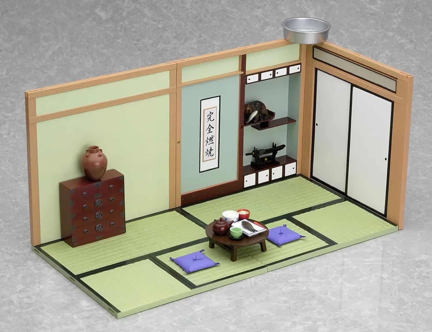 ¡De Phat! ¡El Nendoroid Playset de estilo japonés está de vuelta una vez más! Este set de juego se basa en una habitación de estilo japonés tradicional y está separado en dos sets; este conjunto B presenta el lado de la habitación de invitados de la habitación. Una de las paredes cuenta con una puerta giratoria oculta. La puerta corredera se puede abrir y cerrar. Se incluyen algo de té y dango para servir a los invitados. Los sets de juego se pueden combinar tanto horizontal como verticalmente, creando un espacio de exhibición fácil para tus Nendoroids. Ten en cuenta que no se incluyen Nendoroids en este set.
