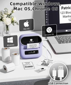 1. Impresora de etiquetas térmicas: Nunca necesite tinta, tóner y cinta nuevamente. Esta impresora de etiquetas de código de barras imprime utilizando tecnología térmica, lo que significa que solo necesita reabastecerse de etiquetas. La impresora de etiquetas térmicas viene con 3 rollos de etiquetas (1 rollo de etiquetas de 40x30mm, 1 rollo de etiquetas de 60x40mm, 1 rollo de etiquetas de 70x80mm) (Atención: la impresora de etiquetas solo admite la impresión de etiquetas de ancho 0.78»- 3.14», no puede imprimir etiquetas de envío de 4 x 6).