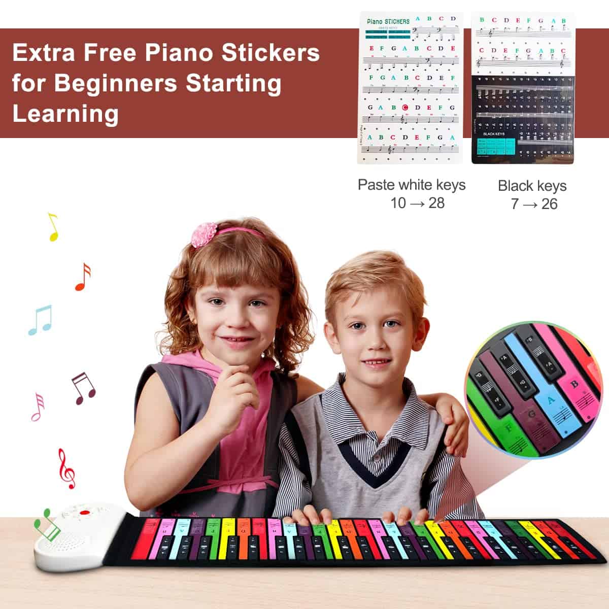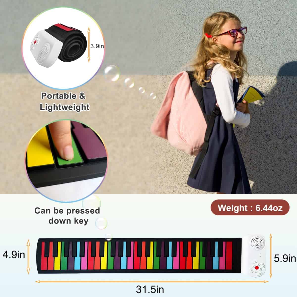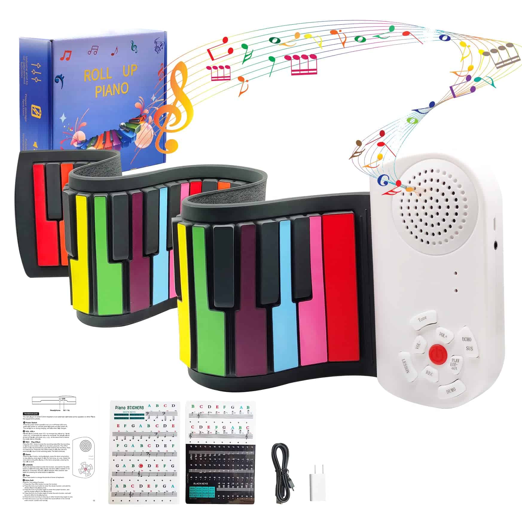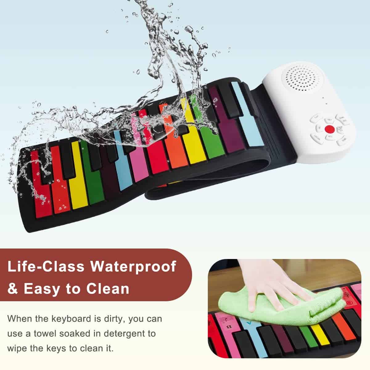 5. Buen Tacto y Fácil de Limpiar: Las teclas negras y las teclas coloridas están hechas de silicona gruesa, que se pueden presionar individual o simultáneamente para ofrecer una experiencia de juego realista. Se pueden limpiar fácilmente con un paño húmedo.