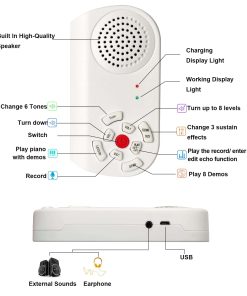 4. Multifunción y Multi interfaz: Las interfaces te permiten tocarlo con auriculares o altavoz externo. Puedes elegir el acompañamiento que desees y tocar solo mientras tus hijos no molestan a otros. El control de volumen se adapta a tus diferentes campos de juego. El piano tiene 7 funciones como grabar, función de enseñanza, función de edición de eco. Todas las funciones y métodos de uso están detallados en el manual de instrucciones.
