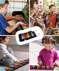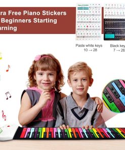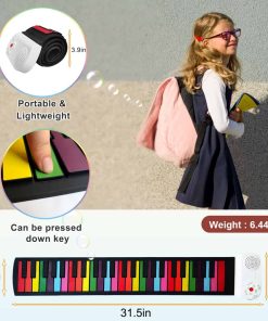 1. Versión Mejorada: Este piano enrollable está equipado con un modo de lección para que tu hijo pueda tocar con las demostraciones y progrese rápidamente. Las pegatinas de piano complementarias facilitan el inicio con el piano. Comparado con otros productos comunes en el mercado, nuestro producto es más ligero, solo 6.44 onzas. El piano tiene 8 demostraciones incorporadas, el tiempo de trabajo puede durar de 6 a 8 horas.