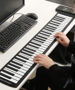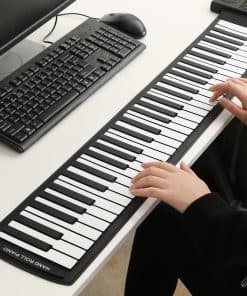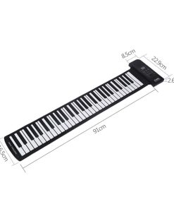 Este piano de 61 teclas (C3 ~ C8) es adecuado para el entretenimiento en casa y la práctica común de la música. A pesar de su tamaño, aún obtienes un gran sonido de calidad, con 128 tonos, 128 ritmos, 45 canciones de demostración. Independientemente de tu edad o nivel de habilidad, este piano enrollable es una excelente idea de regalo. Especificaciones: Material: Silicona Interfaz: Interfaz MIDI Color: Negro y Blanco Tamaño: 91cm x 16.5cm Peso del paquete: 1287g Cantidad: 1pc Incluye: 1 x Piano Enrollable 1 x Adaptador de Corriente 1 x Manual en Inglés Nota: 1. Por favor permita un error de 1-3cm debido a la medición manual. Gracias por su comprensión. 2. Los monitores no están calibrados de la misma manera, por lo que el color del artículo mostrado en las fotos puede variar ligeramente del objeto real. Por favor, tome el real como estándar.
