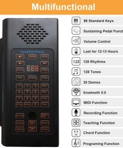 Si quieres comprar un piano para ti mismo o para tus hijos sin gastar mucho dinero en un piano real, si quieres que tu hijo aprenda a tocar el piano y te preocupa que la habitación no sea lo suficientemente grande, si te preocupa que el piano de tu hijo moleste a los vecinos, ¡no dudes! El piano enrollable de 88 teclas Lamir con pedal diseñado para principiantes es tu mejor opción. Es multifuncional y puede sonar como un piano real hasta cierto punto. Función: Control de Volumen MIDI Bluetooth Sustain Grabación Modo de Enseñanza 128 Tonos y 128 Ritmos y 20 Demos Función de Acordes Función de Programación Qué obtienes: 1 X Piano Enrollable 1 X Pedal de Sustain 1 X Instrucciones 1 X Enchufe Universal de 110V y 220V 1 X Cable de Carga