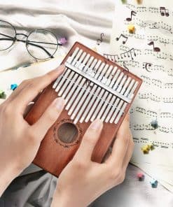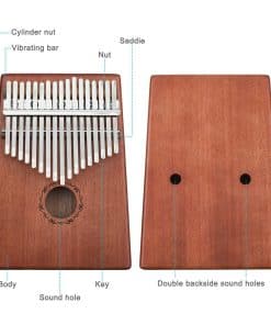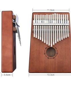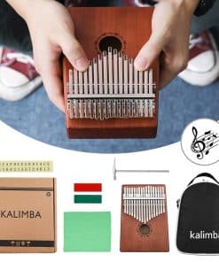 Fabricado en cuerpo de caoba de alta calidad con 17 púas de acero al carbono ajustables. Este kalimba proporciona un timbre más brillante y claro, una mayor duración y una sensación de tacto más cómoda para ti. El kalimba es un instrumento musical nacional con características étnicas en África. También se le llama piano de pulgar porque las personas usan sus pulgares para golpear las láminas del instrumento (hecho principalmente de madera, bambú o metal en el desarrollo moderno), lo que produce un sonido maravilloso.