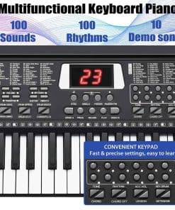 Piano de Teclado de 61 Teclas, Teclado Electrónico Portátil