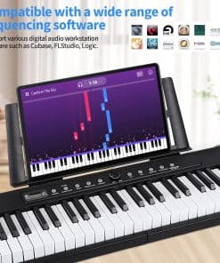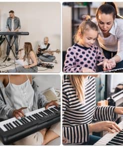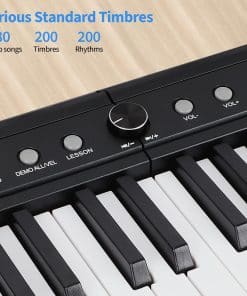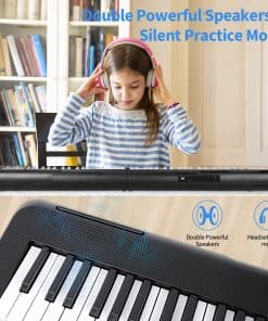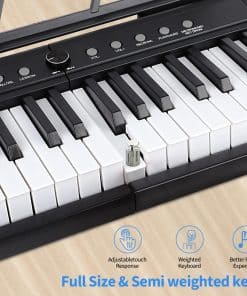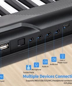 Teclado con tamaño completo de 88 teclas y semipesado, restaura el tacto de las teclas de un piano de cola, el sonido cambia con la intensidad del toque. Teclas sensibles a la velocidad para un rebote más rápido y una reducción de la sensación de fuerza que las teclas de peso completo, adecuado para principiantes. Altavoces integrados, doble toma de auriculares externa y alimentado por batería, este piano digital se puede tocar en cualquier lugar y en cualquier momento. Con función Bluetooth, principiantes y niños pueden practicar este piano digital fácilmente conectándolo de forma inalámbrica a equipos externos compatibles o software.
