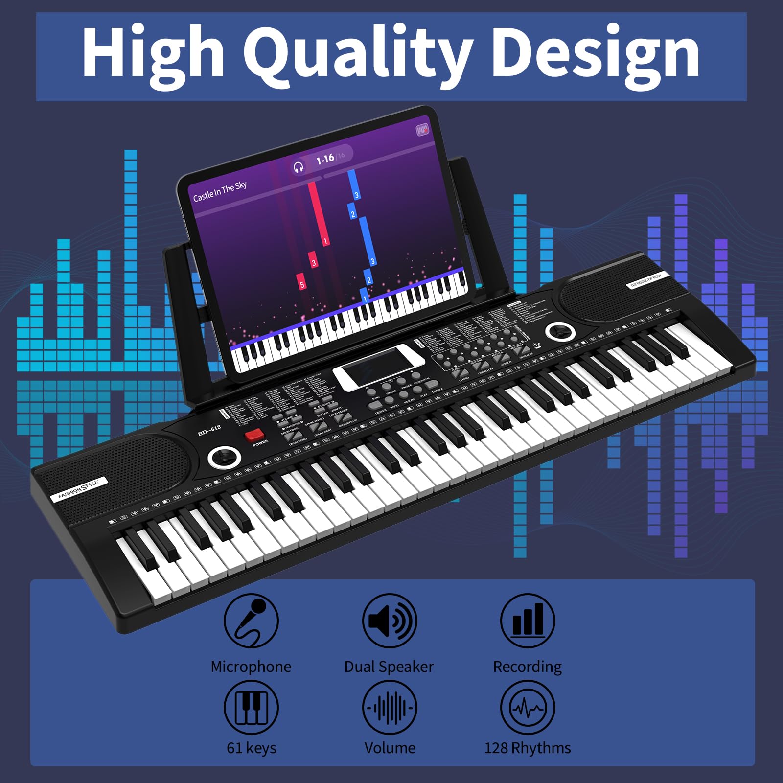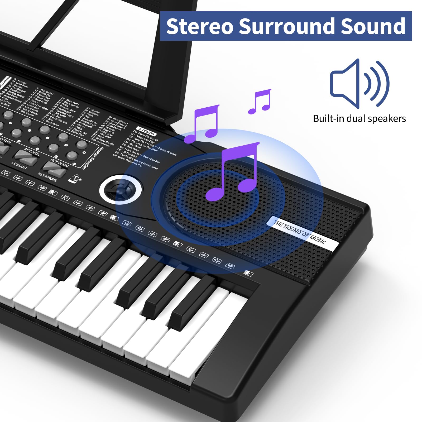 5. Función de grabación y reproducción Toca y canta con la música con el micrófono con cable incluido. El piano musical para principiantes cuenta con una pantalla LCD digital y control de volumen ajustable para que puedas equilibrar el audio a tu gusto.