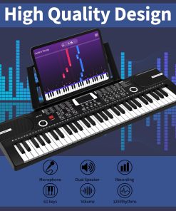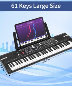 2. Piano de teclado electrónico 29.5 pulgadas de ancho x 8.7 pulgadas de profundidad x 2.3 pulgadas de alto. Los niños no solo pueden tocar el teclado con la música, sino que también pueden cantar una canción, el piano viene con Grabación, Reproducción, Demo, Play, Volumen Ajustable.