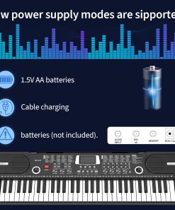 1. 2 Métodos de alimentación El piano de teclado portátil puede ser alimentado por un adaptador de corriente estándar o pilas AA de 1.5V (no incluidas), por lo que además de usarlo en casa también se puede llevar y tocar al aire libre.