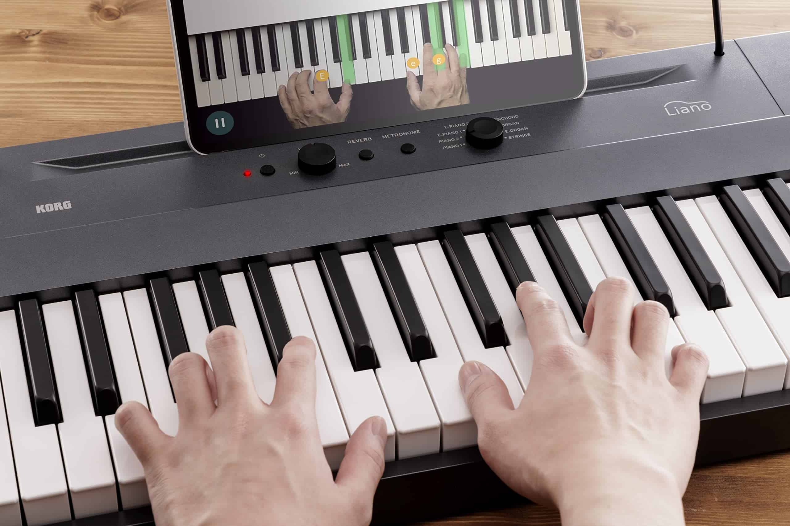 El Piano Digital Portátil Korg Liano de 88 teclas es ideal para músicos que buscan calidad y portabilidad. Con teclas semi-contrapesadas que ofrecen una experiencia de juego sensible y realista, este piano cuenta con altavoces de reflejo de graves que proporcionan un sonido rico y de rango completo sin necesidad de amplificación externa. Además, incluye un pedal de sustain que mejora tus dinámicas de juego, ofreciendo transiciones más suaves y una expresión de sonido más rica. Con un diseño portátil, este piano te permite practicar en cualquier lugar. También cuenta con un atril para colocar partituras de forma conveniente. Incluye un paquete de software gratuito que incluye 3 meses de acceso al software de aprendizaje de piano Skoove y más. Con un metrónomo integrado que ayuda a mejorar el tiempo y el ritmo al proporcionar un ritmo constante. Ofrece una variedad de sonidos de instrumentos que incluyen pianos, pianos eléctricos, cuerdas y más. Conectividad USB para una fácil integración con software de grabación e instrumentos virtuales. Ligero y compacto para un uso cómodo en casa o en movimiento.