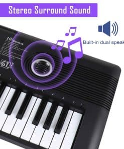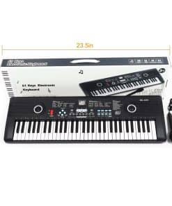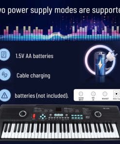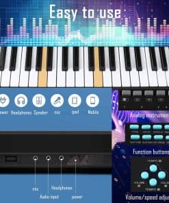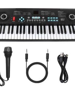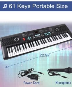 Teclado de piano compacto de 61 teclas para niños. Instrumento perfecto para principiantes, portátil y ligero. Hecho de plástico ABS respetuoso con el medio ambiente. Amplia selección de funciones avanzadas y diferentes modos de enseñanza. El teclado electrónico de 61 teclas negro y blanco, hecho de plástico y componentes electrónicos, es un maravilloso teclado musical para desarrollar la conciencia cerebral de los niños. Incluye micrófono, cable de alimentación USB y 61 teclas de piano.