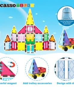 2. BOLSA DE JUGUETE GRATUITA: Nuestra bolsa de almacenamiento con cordón garantiza conveniencia y portabilidad, ofreciendo una solución simple para almacenar y transportar juguetes, como este juego de bloques de construcción de azulejos magnéticos. Ayuda a mantener los azulejos organizados y fácilmente accesibles ya sea en casa o en salidas, esencial para mantener un espacio limpio y facilitar una limpieza rápida. Este artículo fundamental es adecuado tanto para padres ocupados como para niños aventureros, simplificando la organización dondequiera que se aventure el juego de imitación.