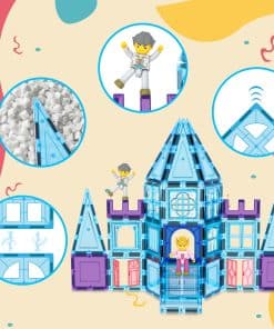 4. CLIPS MAGNÉTICOS INTERCAMBIABLES: Eleva el set magnético con 8 clips para ventana y 16 clips para puerta, cada uno equipado con imanes para una conexión sin problemas a cada baldosa cuadrada. Los insertos de clip dinámicos facilitan la construcción de estructuras más grandes, completas con ventanas y puertas funcionales. Ya sea creando un castillo real de princesas, una casa de ensueño visionaria, bulliciosas metrópolis, graneros rústicos, rascacielos imponentes, o cualquier fantasía arquitectónica que tu hijo imagine, las posibilidades son infinitas.