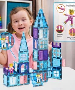 1. FROSTY WONDERLAND: Bloques Magnéticos sumérgete en el tema de invierno de hielo con estos bloques translúcidos, ofreciendo un viaje visual cautivador para los niños. Cada bloque cuenta con potentes imanes, asegurando conexiones firmes para estabilidad durante la creación. Diseñados con imanes fuertes, estos bloques están fabricados para resistir el juego constante. Una iniciación impecable o una expansión de tu surtido de bloques magnéticos, acompañado por 2 encantadores personajes, 2 herramientas de mano, 1 escalera, ventana operable y puertas.