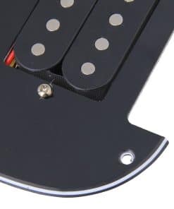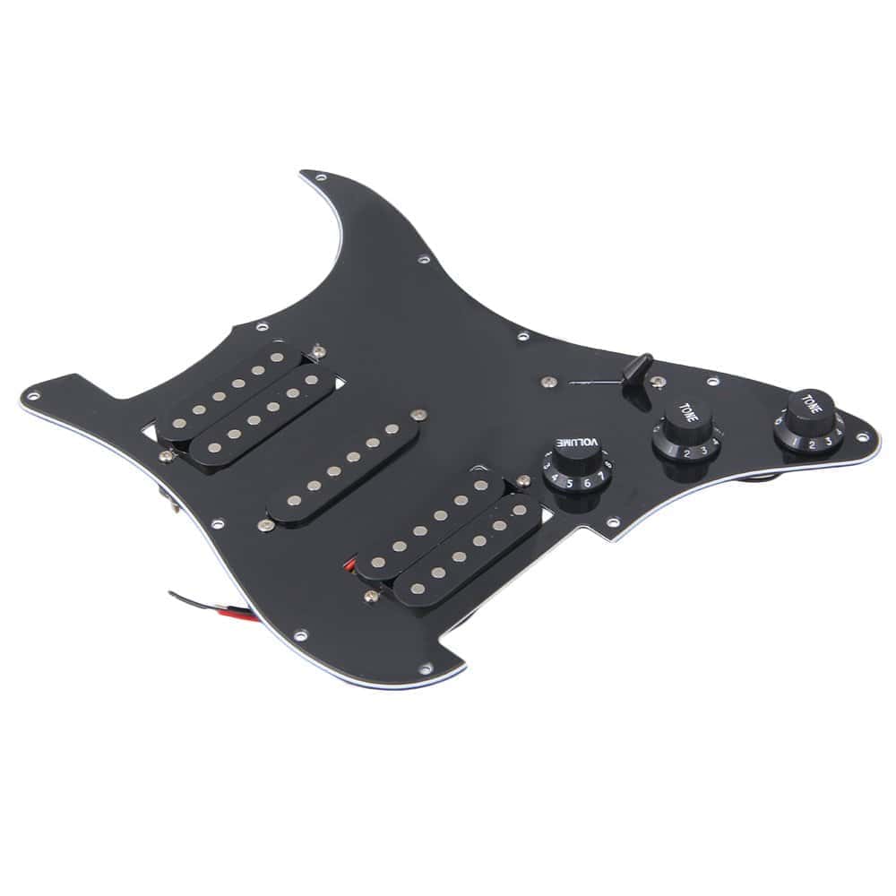 Guardia de 3 capas negra/blanca/negra con 11 agujeros de montaje cargada con 2 humbuckers y una pastilla de bobina simple en configuración H-S-H