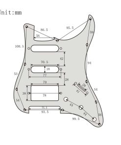 La superficie del producto está cubierta con una película para evitar rasguños y daños. Por favor retire la película antes de instalar el producto en la guitarra. Instalados los botones, interruptores, pastillas y circuito pre-cablados al estilo strat estándar, incluye tornillos para el pickguard. Para cada pastilla humbucker, habrá un interruptor de tono. Si hay dos pastillas humbucker, habrá dos interruptores de volumen. Característica: Hecho de plástico, cobre e imán, color negro blanco zebra, se ve genial. Evita rasguños, un buen reemplazo para tu guitarra. Adecuado para guitarra eléctrica. Especificaciones: Material: Metal, plástico, cobre, tablero de guarda de perla, imanes Color: Negro blanco zebra Tamaño: Como se muestra en la imagen. Paquete incluido: 1x Pickguard Prewired Loaded de Pastillas 11x Tornillos de montaje Debido a la medición manual, puede haber un error de 0.5-1mm.