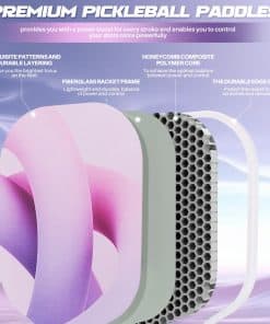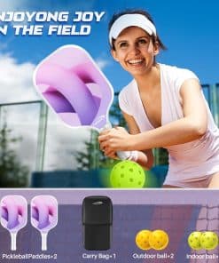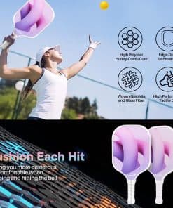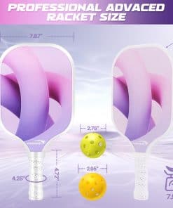 Balance de peso y control: Nuestras raquetas están fabricadas con superficie de fibra de vidrio y núcleo de panal de polipropileno, brindándote el mejor control y fuerza en cada golpe. El equilibrio absoluto de potencia y control garantiza que puedas manipular los remos fácilmente y reaccionar rápidamente. Tamaño ideal y punto dulce: Nuestra raqueta de Pickleball tiene un tamaño designado aprobado por la agencia oficial de administración de Pickleball – Dimensiones: 15.7″X7.8″, Circunferencia del grip: aprox 4-1/4″, Peso: 7.2 oz. El tamaño estándar de una bola de recolección permite un ángulo de impacto más preciso y dulce, permitiendo tiros precisos y control mejorado en la cancha. Agarre excelente: El set de paletas de pickleball tiene una longitud de mango de 5.1 pulgadas, que es moderada y muy adecuada para agarrar. Y el agarre está hecho de materiales profesionales que absorben el sudor y diseño antideslizante. El agarre mejorado te hace más hábil en deportes o en el campo. Regalos perfectos para hombres y mujeres: Nuestro set de pickleball presenta patrones de impresión exquisitos y un punto dulce más grande, lo que facilita que hombres, mujeres y niños se inicien rápidamente con esta raqueta. Nuestra bolsa de pickleball tiene una gran capacidad para contener no solo dos raquetas de recogida y cuatro bolas de recogida, sino también otros artículos para ti. Creemos que este será un regalo ideal para tu familia o amigos.