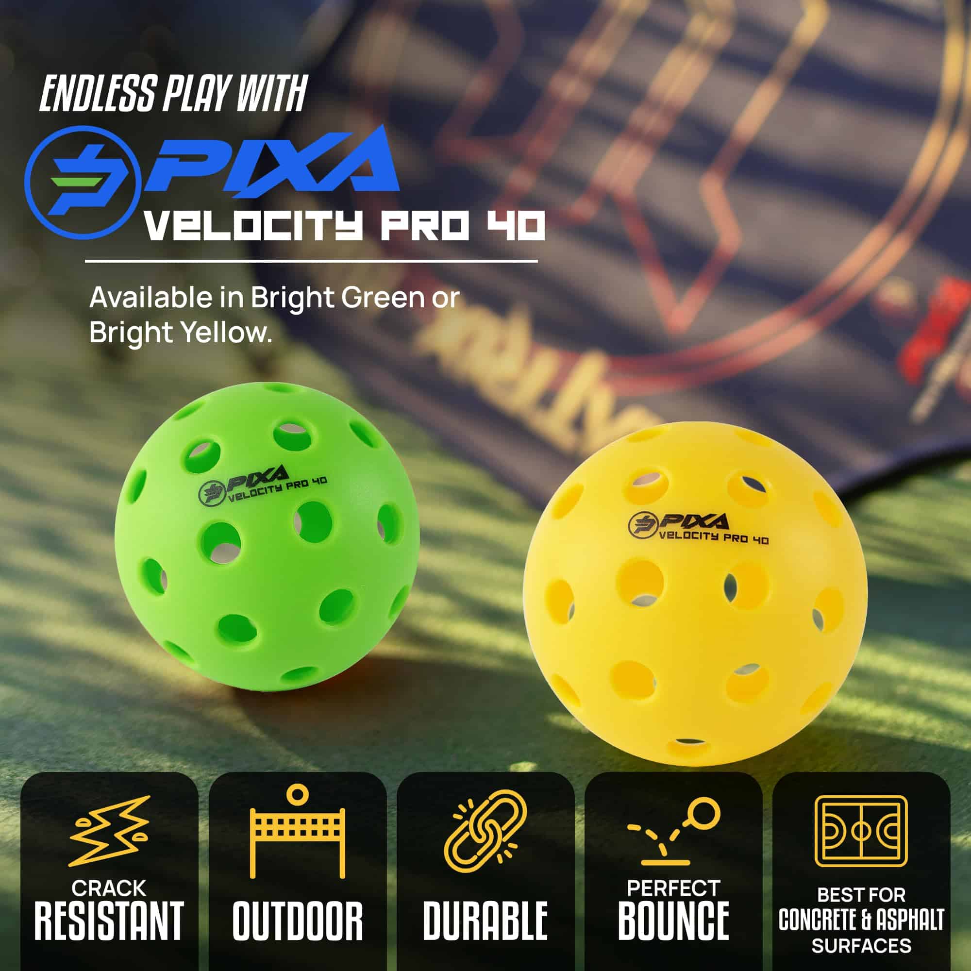Pickleball PIXA Velocity Pro 40 Outdoor Inyecion Moldeado –