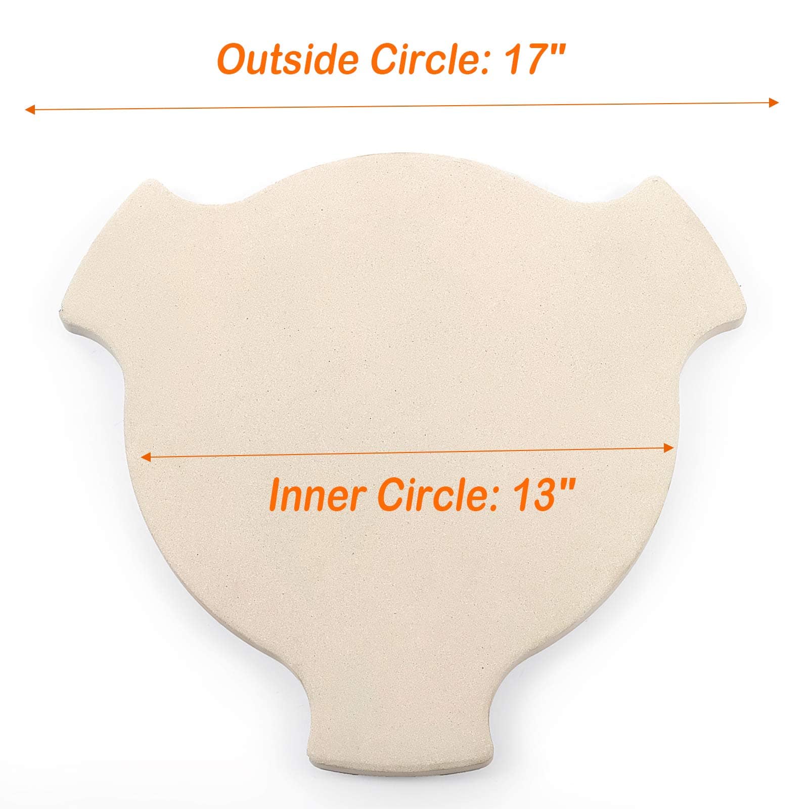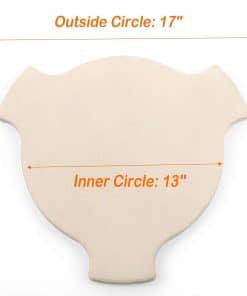 Piedra Deflectora de Calor de 17 pulgadas, Placa Deflectora, Piedra para Ahumar para la Parrilla Kamado de 20 pulgadas, Large Big Green Egg y Más Se ajusta a la parrilla Kamado AKORN de 20 pulgadas, Large Big Green Egg y Más Se ajusta a los modelos de parrillas Char-Griller AKORN Kamado 16620, 26720, 06620 y 6520 Número de Parte Original: Char-Griller 6201 PAQUETE: 1 x Piedra Deflectora de Calor para Pizza Dimensiones: Círculo Exterior: 17″ DIA Círculo Interior: 13″ DIA Grosor: 0.80″ – Hecho con cerámica premium, característica de retención de calor superior – Evita el carbonizado al crear una experiencia de cocción en estilo convección – Trabaja para ayudar a circular el calor – Perfecto para hornear, cocinar pizzas, pan, incluso galletas, ahumar lentamente briskets, asados, pollos enteros o costillas Reglas para mantener limpia su piedra para pizza: 1. Nunca lavarlas con jabón La naturaleza porosa de la superficie solo absorberá el jabón y nunca se librará de él después de eso y la piedra quedará arruinada 2. Nunca intentes limpiarlas cuando estén calientes Deja que se enfríen por completo antes de intentar hacer algo con ellas La forma de limpiar la piedra para pizza: Limpia con agua y un paño limpio Nota: 1. La piedra para pizza es frágil y puede romperse durante el transporte. Ofreceremos un servicio de reembolso o reenvío gratuito de 90 días 2. Por favor, verifique amablemente el tamaño de sus parrillas de gas antes de comprar
