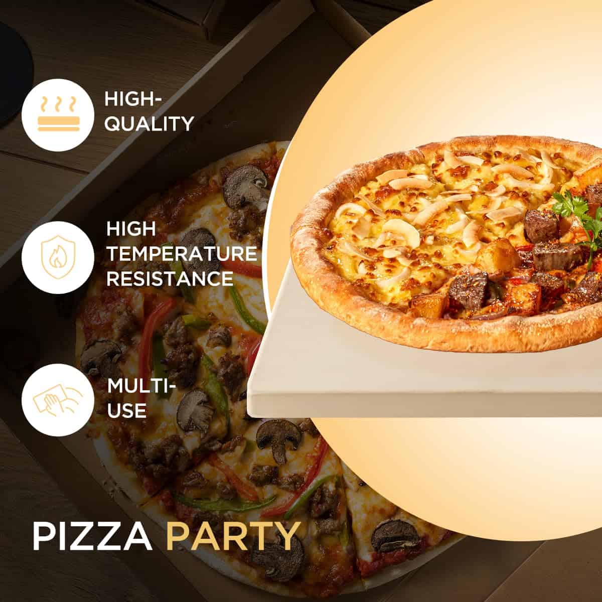 Piedra para pizza RMZUROCK para horno y parrilla, bandeja de horneado de cordierita resistente de alta calidad. Esta piedra para pizza profesional está elaborada con un material duradero de cordierita que distribuye el calor de manera uniforme hasta 680 C (1,256 F). Con una dimensión de 15″x12″x0.6″, esta piedra asegura un precalentamiento más rápido y una distribución de calor superior para hornear de manera uniforme, mientras protege las superficies del horno de derrames de grasa y minimiza la pérdida de calor. Ideal para chefs caseros que buscan lograr bordes crujientes al estilo pizzería y resultados profesionales. Compatible con hornos, parrillas y llamas abiertas, esta piedra para pizza es perfecta para comidas diarias, reuniones familiares y eventos al aire libre. Además de pizzas, también es ideal para hornear panes artesanales, galletas y mucho más. Las instrucciones de limpieza son sencillas: enfriar completamente antes de limpiar con un paño húmedo y retirar los residuos con un cepillo de plástico. Para un uso continuo, se recomienda secar al aire de forma natural sin necesidad de jabón. Contamos con un equipo de soporte al cliente dedicado para brindar consejos de uso y resolver cualquier inquietud de forma rápida y eficaz.