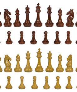 Las piezas de ajedrez Whittier de Best Chess Set con peso pesado y reinas adicionales se sienten geniales en la mano y están cuidadosamente diseñadas para el jugador serio de ajedrez. El peso total de este conjunto es de 2 libras, por lo que disfrutarás de la sensación de cada pieza en tu mano mientras derrotas a tu oponente movimiento a movimiento. Estas piezas de alta calidad están hechas de duradero plástico de alta polímero y están diseñadas para parecer madera marrón oscuro y marrón claro. Además, están acolchadas en la parte inferior para proteger su tablero. El rey mide 3.75 pulgadas de altura con una base de 1.5 pulgadas de diámetro, por lo que este conjunto está diseñado para un tablero grande a extra grande (se vende por separado). Por favor asegúrese de medir nuestras dimensiones indicadas para ver si se ajustan a sus necesidades antes de realizar el pedido. Best Chess Set es una empresa con sede en California y este producto se ensambla en China en nuestra propia fábrica bajo control de calidad.