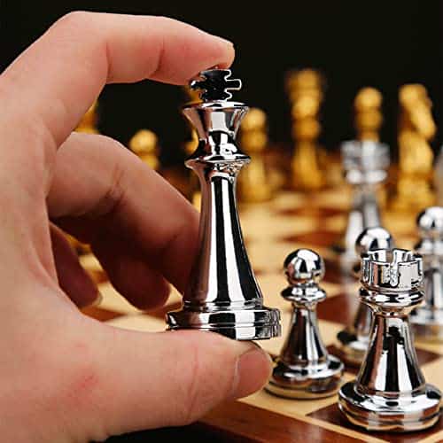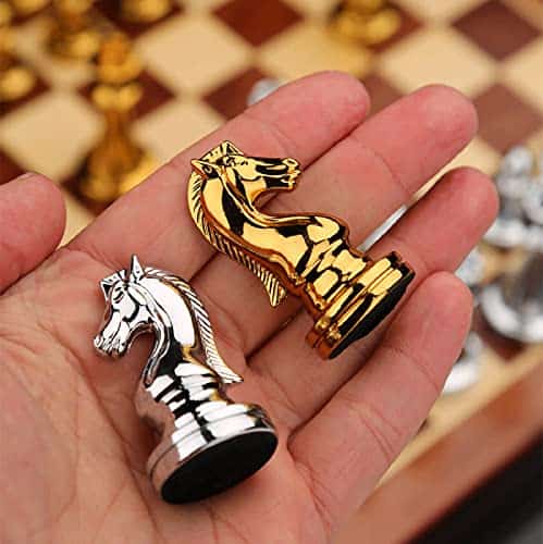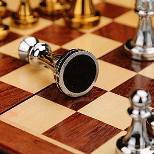 Detalle del producto: 34 piezas de ajedrez Altura del rey 2.6 pulgadas Diámetro de la base del rey 1.4 pulgadas Altura del peón 1.3 pulgadas Peso total 35 onzas Peso del rey 1.9 onzas Peso del peón 0.7 onzas