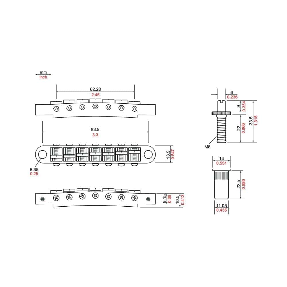 Nashville Large Post TOM Bridge for 7 String Guitar