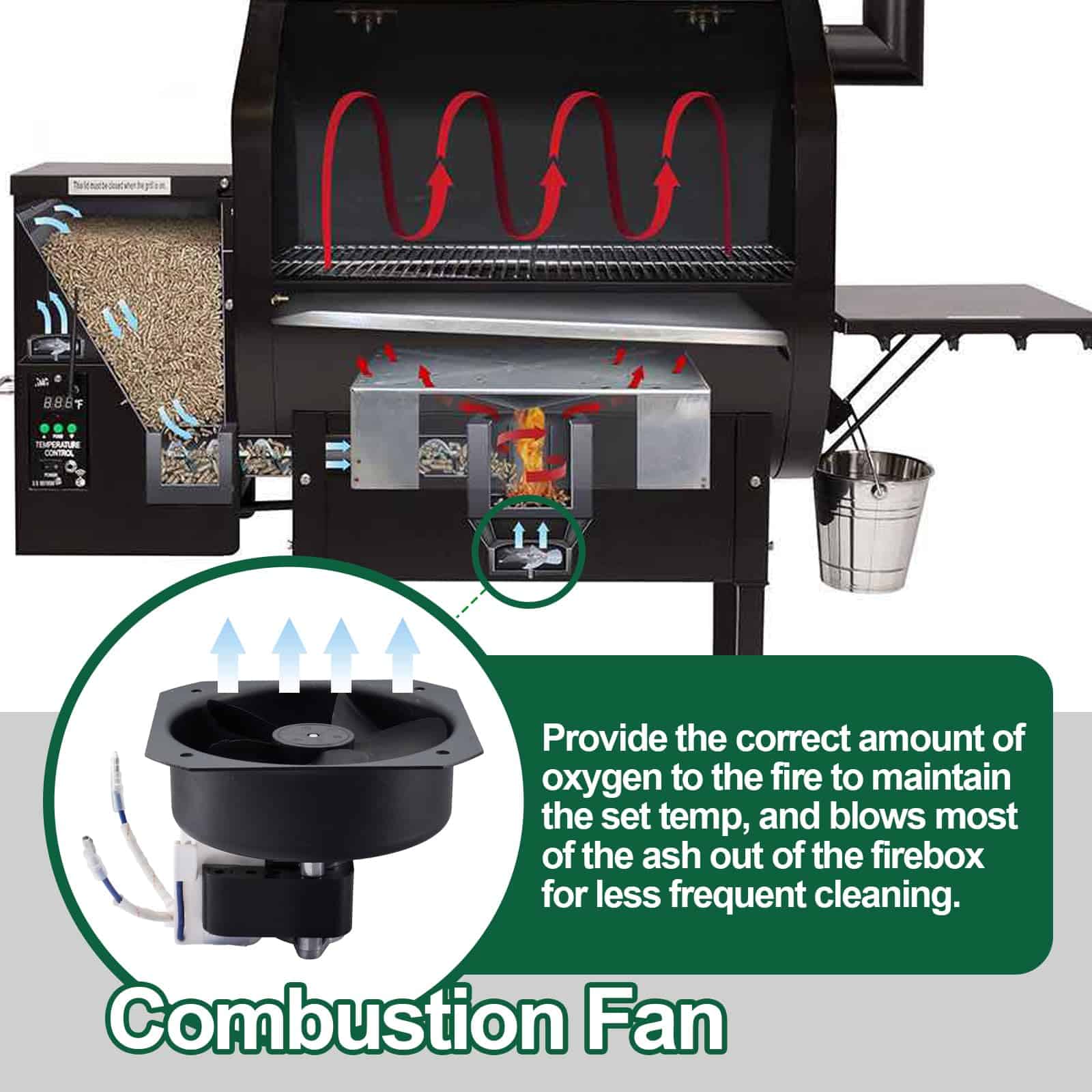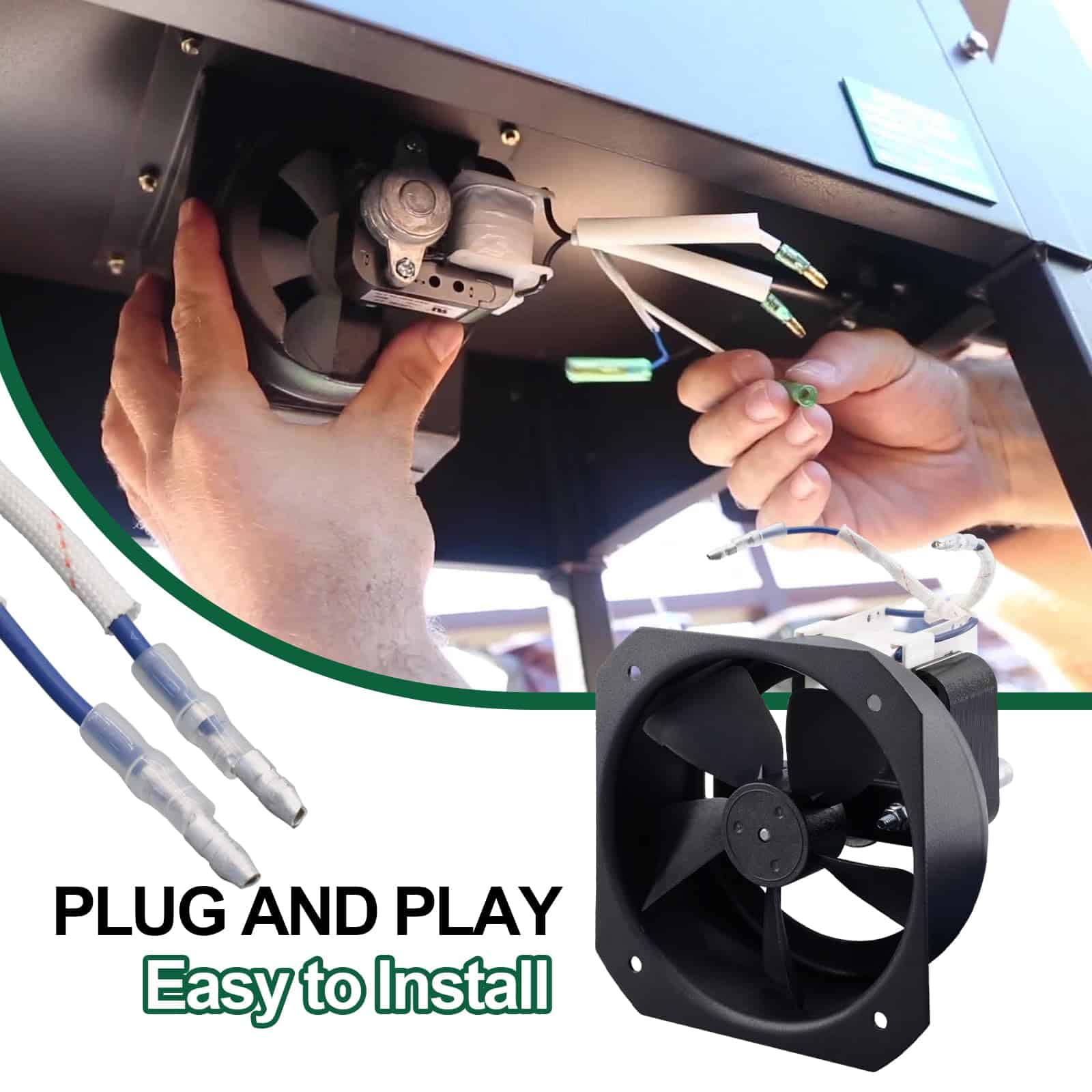 Piezas de repuesto del ventilador de combustión para parrillas de pellets de madera Green Mountain, 110VAC 60Hz P1047 Motor de soplador de ventilador de combustión Piezas de repuesto Ajuste Green Mountain Daniel Boone Choice, Jim Bowie Choice. Este conjunto de piezas de repuesto incluye un ventilador de combustión y circulación de repuesto para la parrilla de pellets Green Mountain. Es compatible con las parrillas de pellets Daniel Boone y Jim Bowie Choice de Green Mountain. El motor de soplador de ventilador de combustión es necesario para mantener los pellets de madera ardiendo y circular el calor alrededor de la parrilla para cocinar de manera uniforme. Las piezas de repuesto son resistentes a altas temperaturas, con un cable que evita cortocircuitos y una hoja de ventilador duradera de nailon. La instalación es rápida y sencilla, solo se necesita un destornillador corto para conectar los cables del ventilador. Nuestro objetivo es garantizar la satisfacción del cliente con un servicio postventa excepcional, ofreciendo una devolución del dinero y una respuesta rápida a cualquier pregunta o problema que pueda surgir.