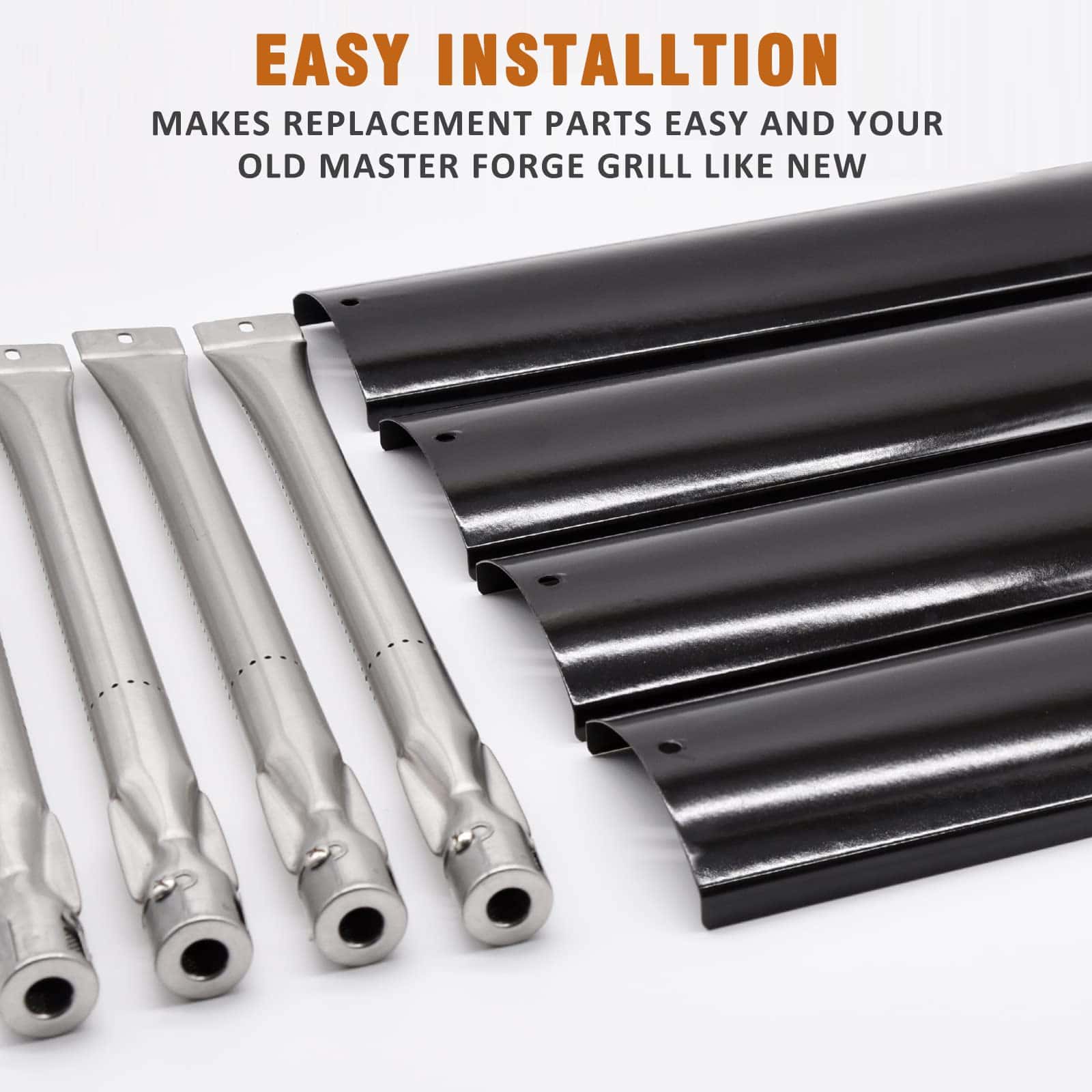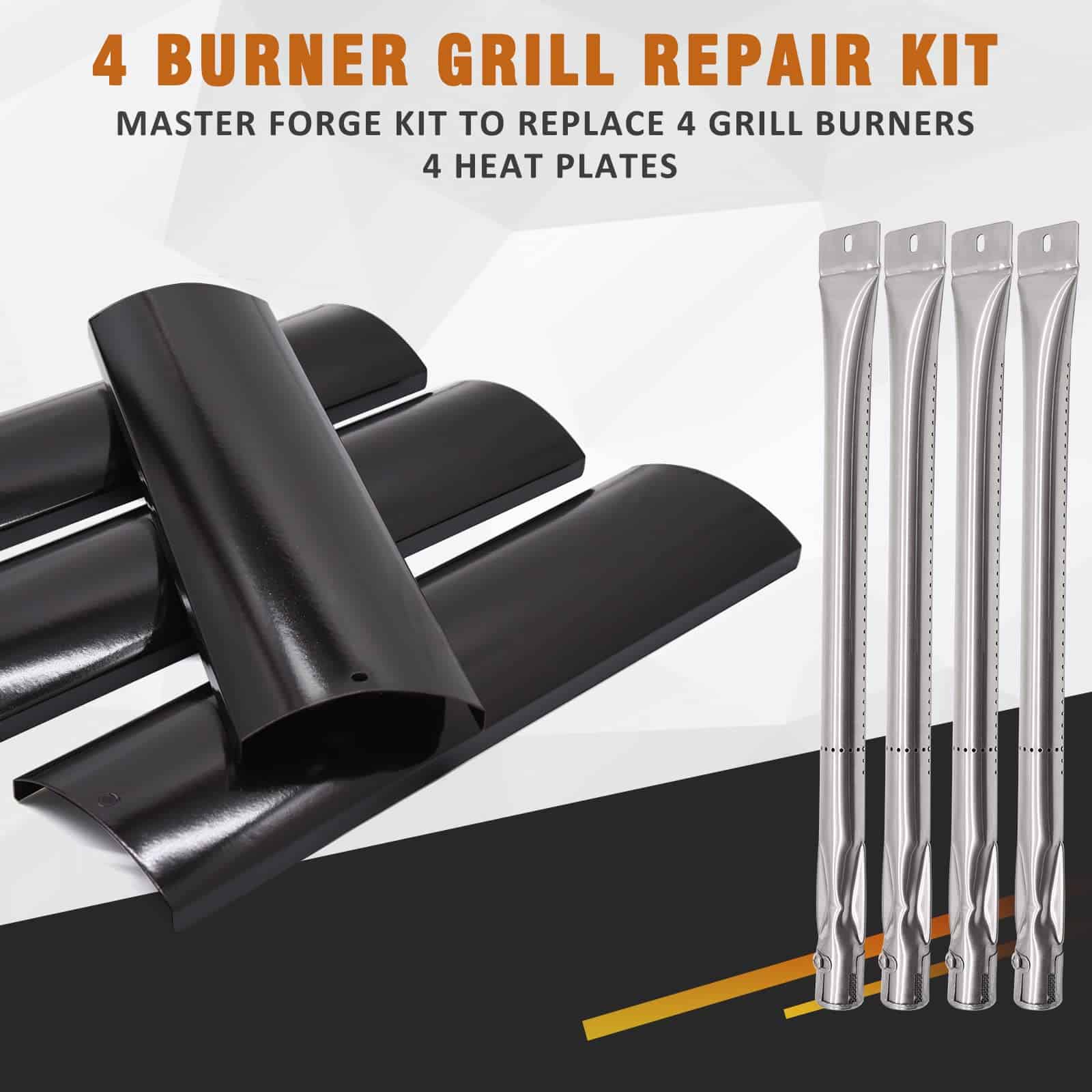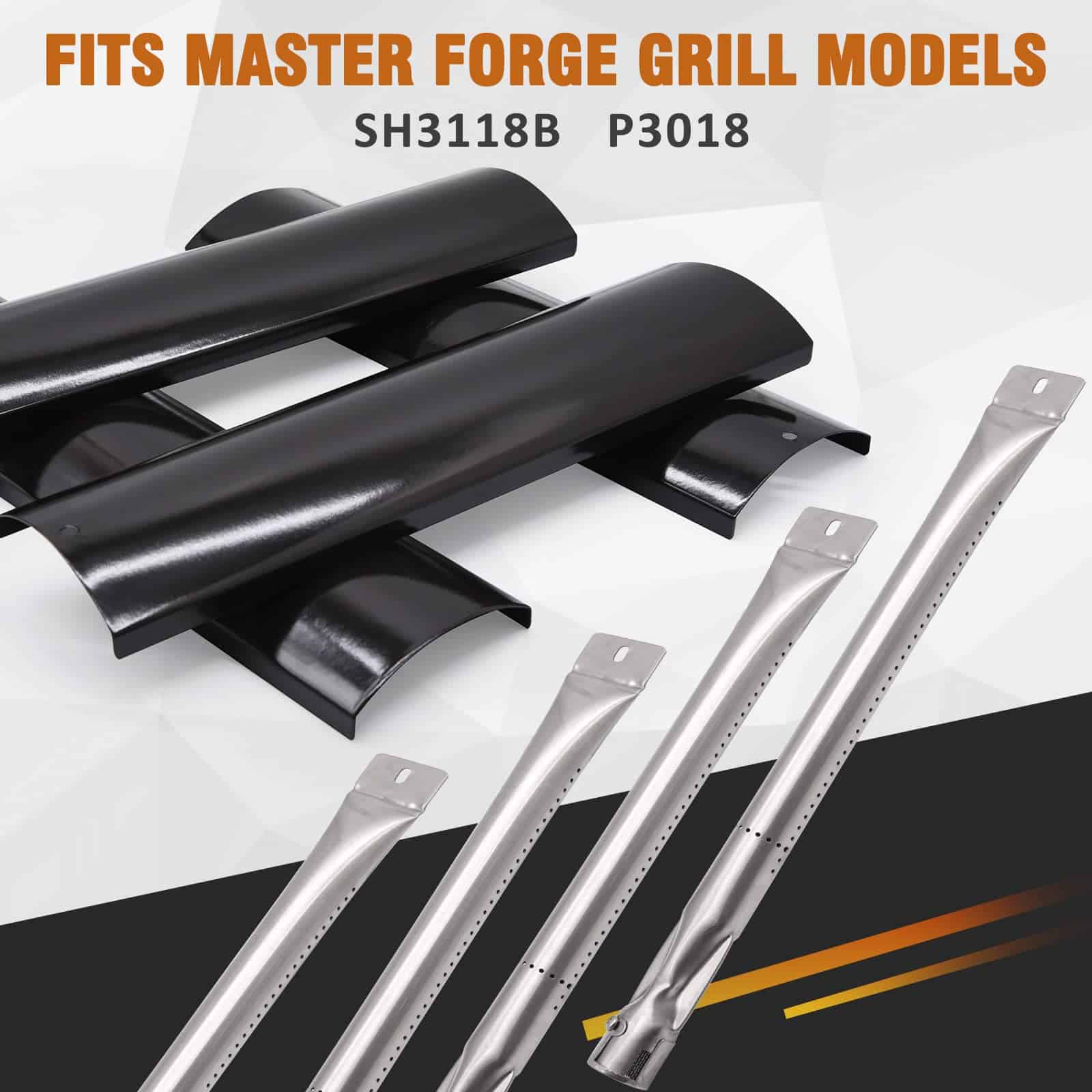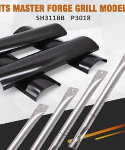 Renueva tu parrilla Master Forge SH3118B con estas piezas de repuesto para parrilla. Refresca la apariencia y rendimiento de tus piezas de parrilla, para mejorar la vida útil de tu parrilla Master Forge. El paquete consta de 4 quemadores de acero inoxidable, 4 placas de calor de acero porcelanizado.