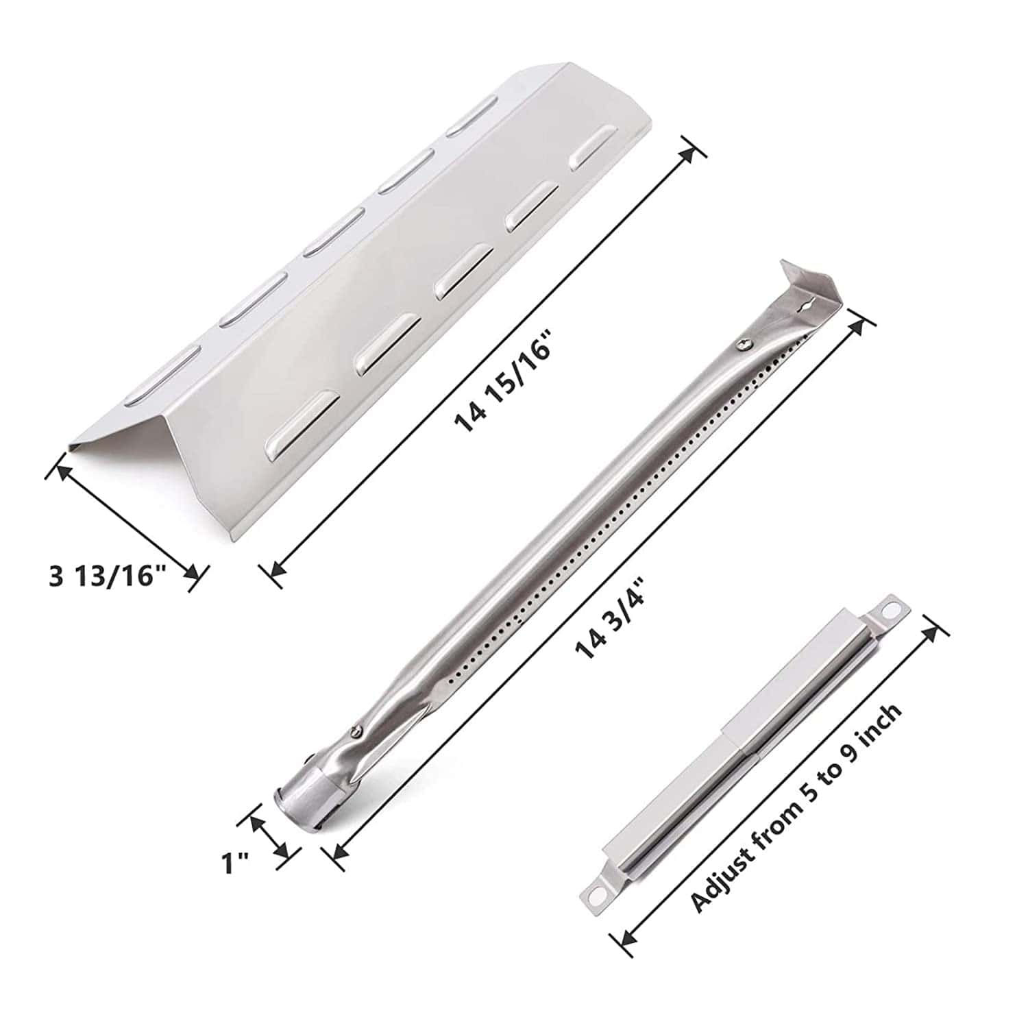 Este conjunto de piezas de repuesto para parrilla de alta calidad es compatible con una variedad de modelos de parrillas Kenmore y otras marcas. Incluye placas de calor de acero inoxidable, tubos de quemador y tubos de transferencia, todo fabricado con materiales duraderos y resistentes. Las dimensiones detalladas de las piezas aseguran un ajuste perfecto para los modelos compatibles. Asegúrese de comparar el tamaño y la apariencia de su quemador original antes de realizar la compra. Disfrute de un rendimiento óptimo de su parrilla con estas piezas de repuesto de calidad.