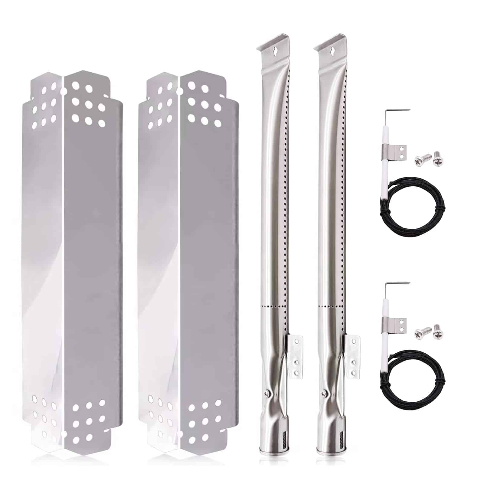 Piezas de repuesto para parrilla Hiorucet para modelos de parrilla Nexgrill 2 Burner 720-0864M, 720-0864, 720-0864R, Nexgrill 3 Burner 720-0894F y modelos de 4 y 5 quemadores 720-0830H, 720-0888N, 720-0888, 720-0830G, 720-0888A, 720-0958A, 720-0882S. Incluye 2 defletores de llama y 2 tubos de quemador. Ajuste perfecto para los modelos de parrilla Nexgrill 2 Burner 720-0864M, 720-0864, 720-0864R, Nexgrill 3 Burner 720-0894F, Nexgrill 4 Burner 720-0830H y Nexgrill 5 Burner 720-0888N, 720-0888. Nota: Se requieren 2 paquetes para su Nexgrill 3 Burner y 4 Burner. (3 paquetes para Nexgrill 5 Burner)