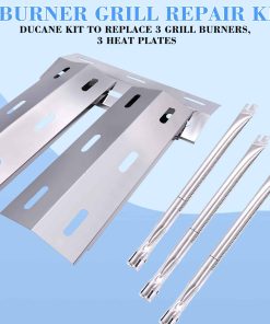 Renueva tu parrilla de gas de 3 quemadores Ducane modelo 30400040 con estas piezas de repuesto para parrilla. Refresca la apariencia y el rendimiento de las piezas de tu parrilla, para mejorar la vida útil de tu parrilla Ducane. El paquete consta de 3 quemadores de acero inoxidable para parrilla, 3 placas de calor de acero inoxidable.