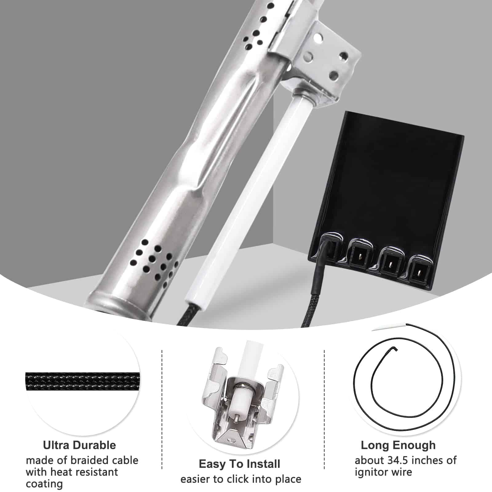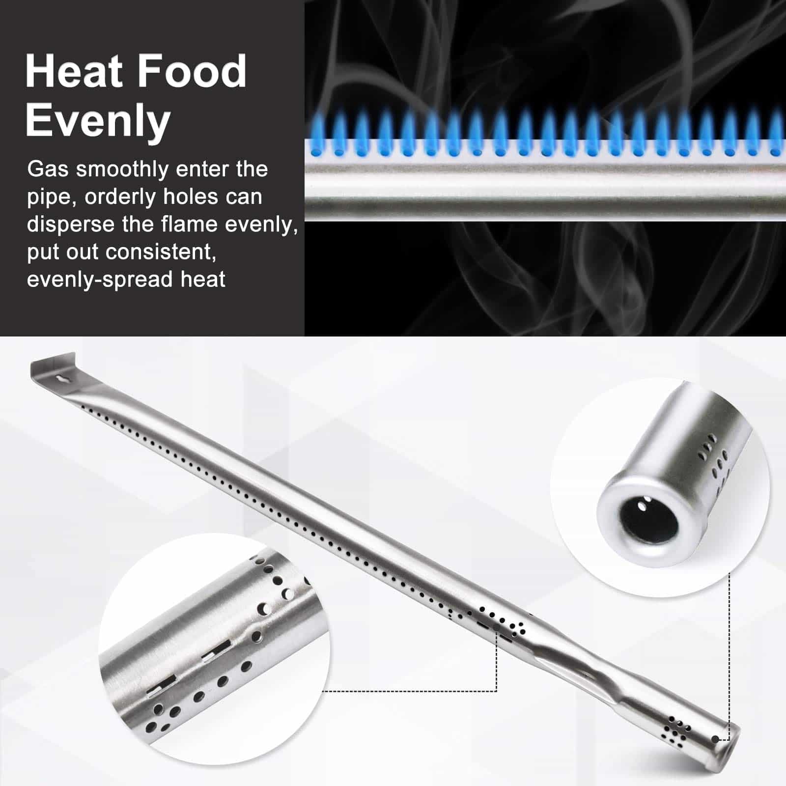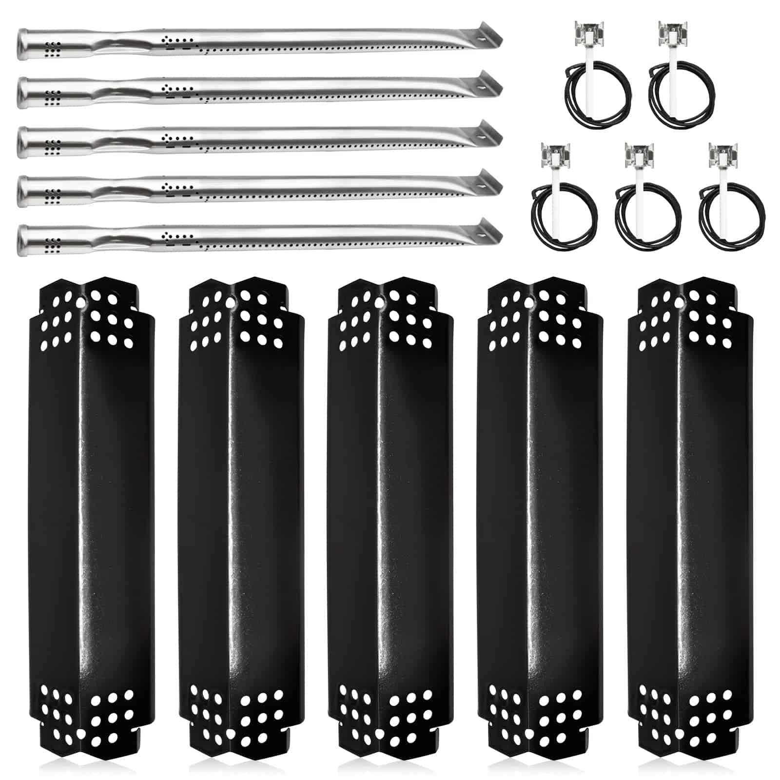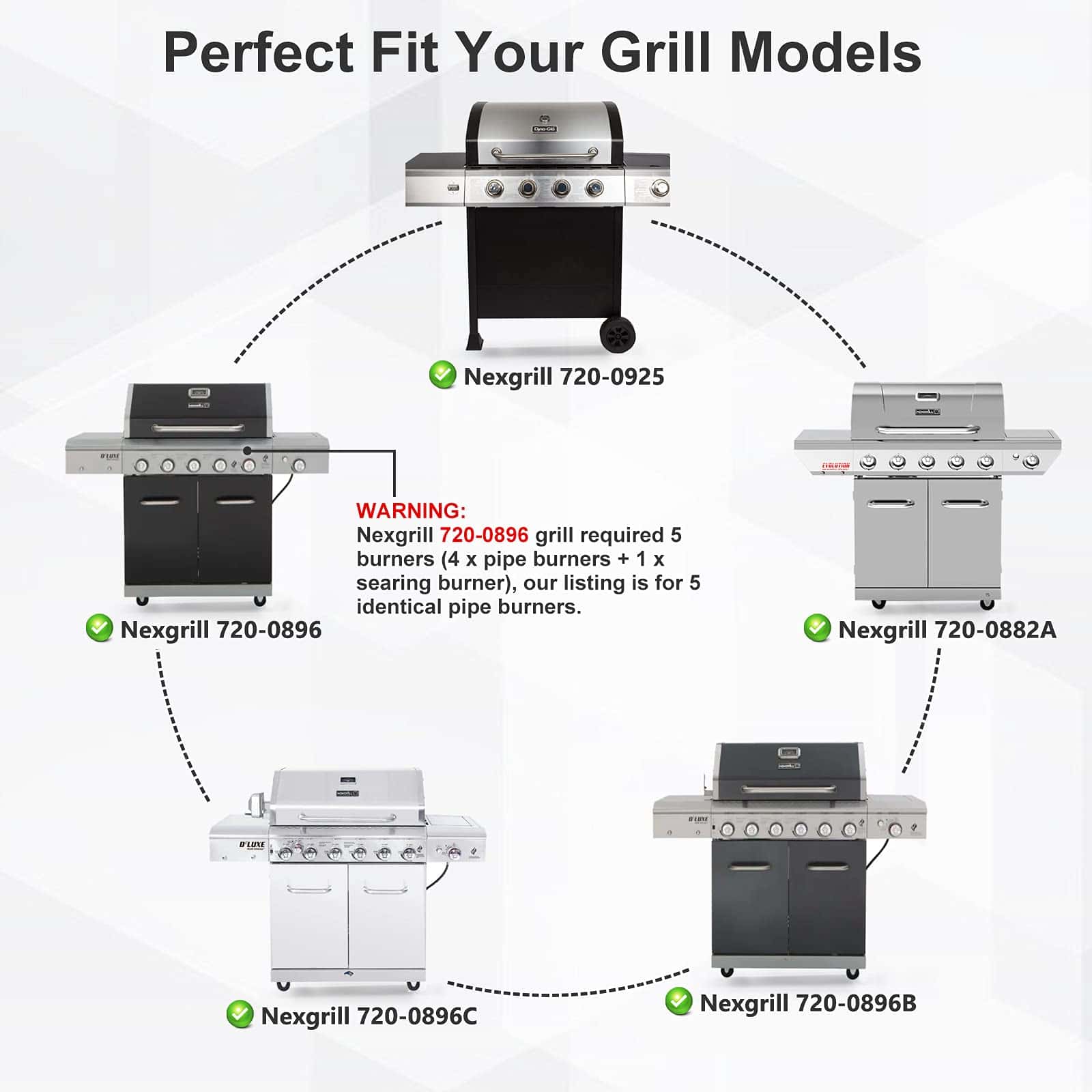 Juego de reparación de parrilla de repuesto 720-0882A que incluye 5 x tubos de quemadores, 5 x barras saborizantes, 5 x ignitores de parrilla. Se ajusta perfectamente a las parrillas Nexgrill de 5 quemadores 720-0882A, 720-0896, 730-0896, Nexgrill de 6 quemadores 720-0896B, 720-0896C, 720-0925, 720-0896E, y Nexgrill de 4 quemadores 720-0925P. Ayuda a cocinar de manera uniforme, evitar que los alimentos se expongan directamente a la llama, capturar goteos y aceite, y agregar un sabor ahumado a la comida. Instalación fácil.