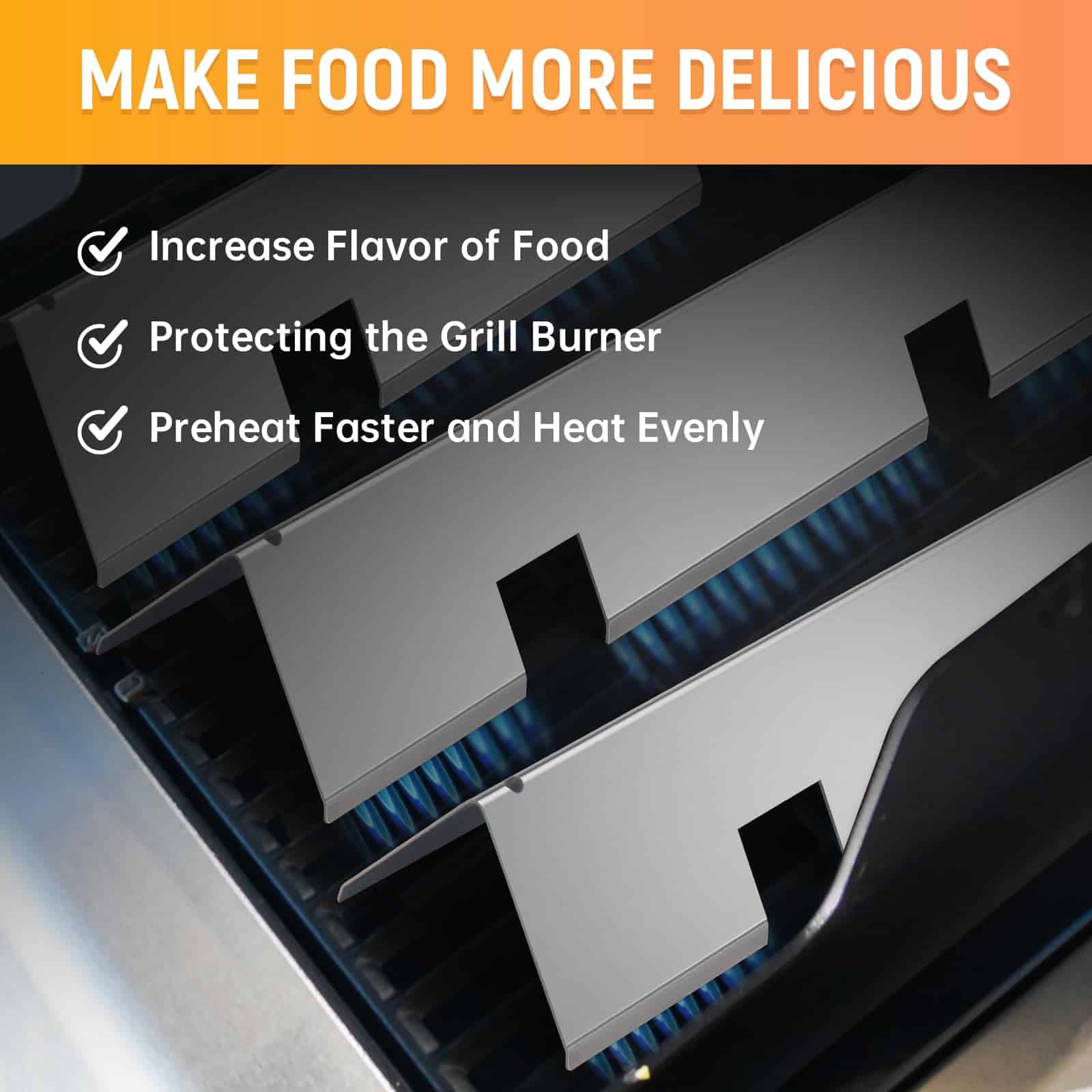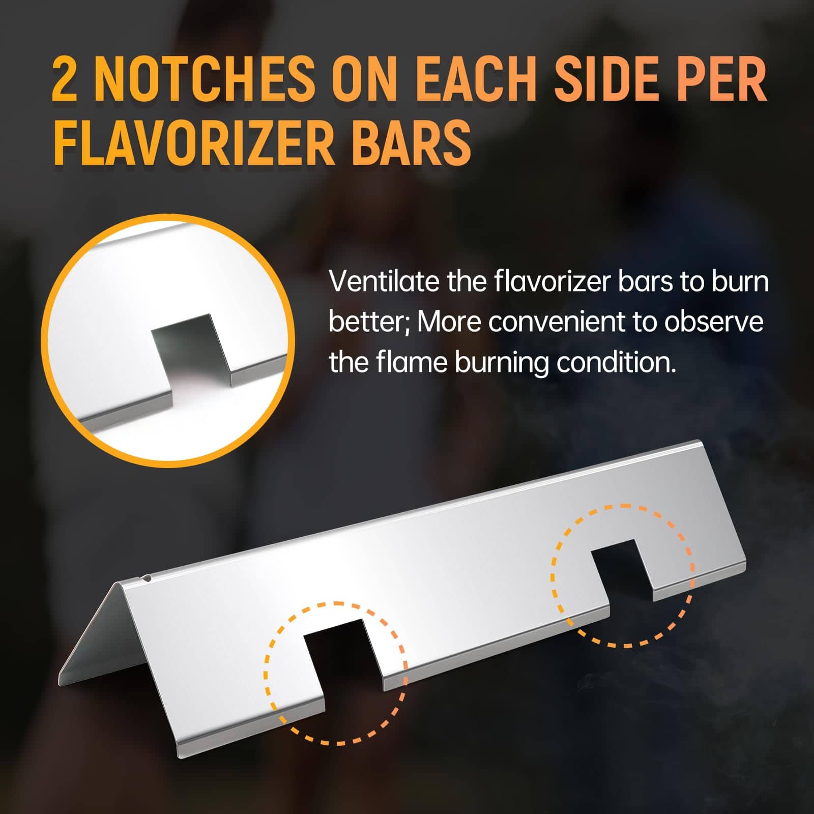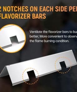 5. Funcionalidad Mejorada con Diseño Único: Estas barras flavorizer cuentan con cuatro muescas precisamente colocadas (dos en cada lado), mejorando la ventilación para una combustión más eficiente. El diseño te permite observar la llama fácilmente, asegurando una distribución de calor uniforme en toda la parrilla. Esta función te ayuda a lograr comidas perfectamente cocinadas con tus repuestos para parrilla Weber Spirit.
