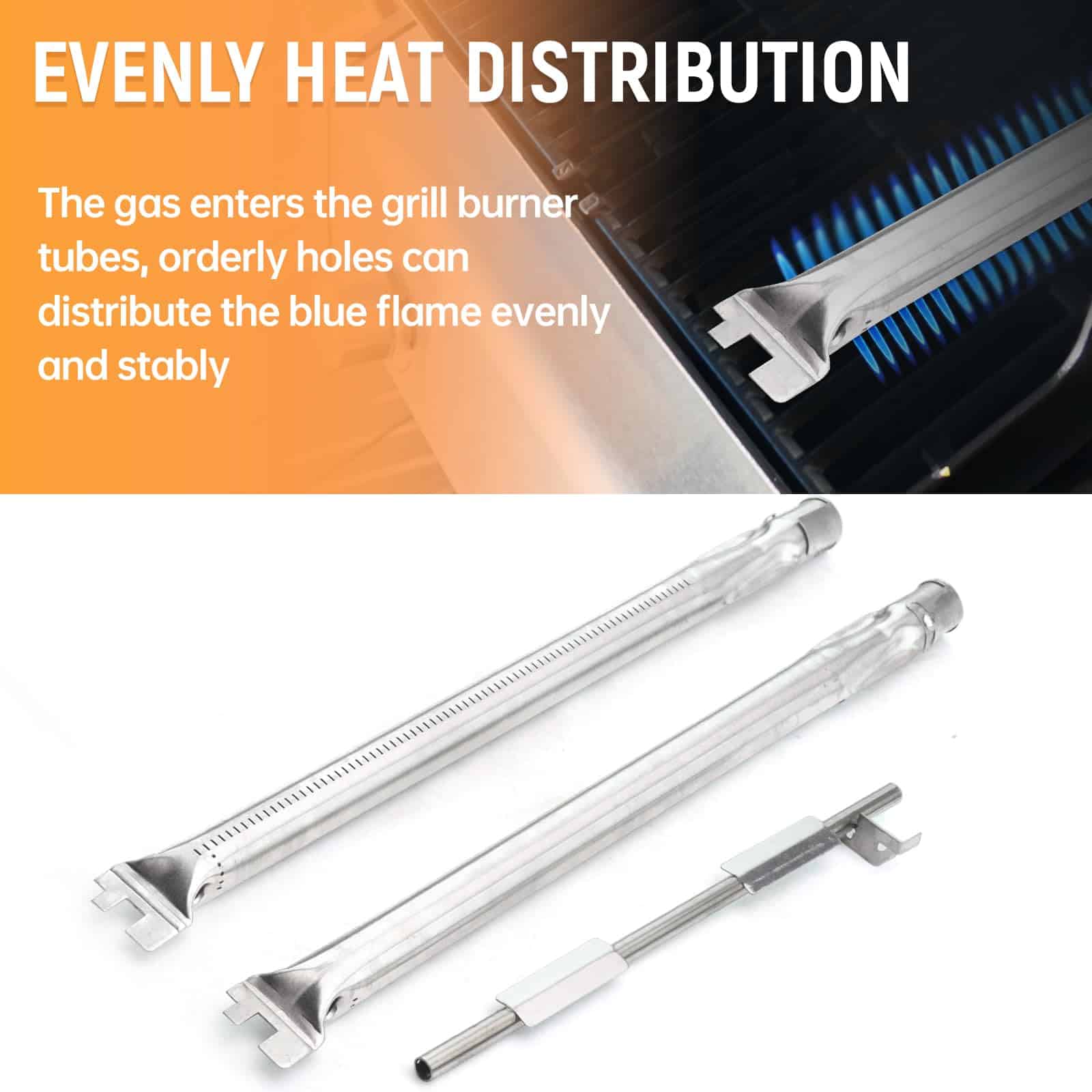 Replacement parts for Weber Spirit E-210 Grill. Compatible with Weber Spirit 200 Series grills (2013 – Current) with front mount control, including spirit E-210, spirit E-220, spirit S-210, spirit S-220, and more. Also fits Weber Spirit II 200 Series grills, such as spirit ii E-210, spirit 2 E-210, spirit ii E-220, spirit 2 E-220, spirit ii S-210, spirit 2 S-210, spirit ii S-220, spirit 2 S-220 and more. Replaces Weber Gas Grill Parts Numbers: 7635, 69785, 68949, 69899, 67045, 67024, 67102, 67278, WFBSP2-2013, and more. Fits Weber Gas Grill models: 46100001, 46110001, 46310001, 47100001, 46113101, 46010074, 44010001, 44020001, 46010674, and more. Set of 3 stainless steel flavorizer bars for Weber Spirit grills, each measuring 15.3″L x 3.5″W x 2.5″H. Includes 2 main burners and 1 smaller crossover burner. Two main burners measure 18″L, crossover burner is 10.5″L. The unique design of these flavorizer bars, with four precisely placed notches (two on each side), improves ventilation for more efficient burning and allows for easy observation of the flame, ensuring even heat distribution across the grill. Please note that these flavorizer bars only fit Weber Spirit & Spirit II 200 series grills with FRONT mount control (2013 – Current) and not side mount control (2007 – 2012). If you are unsure of compatibility with your Weber GS4 grill parts, please contact us for assistance.