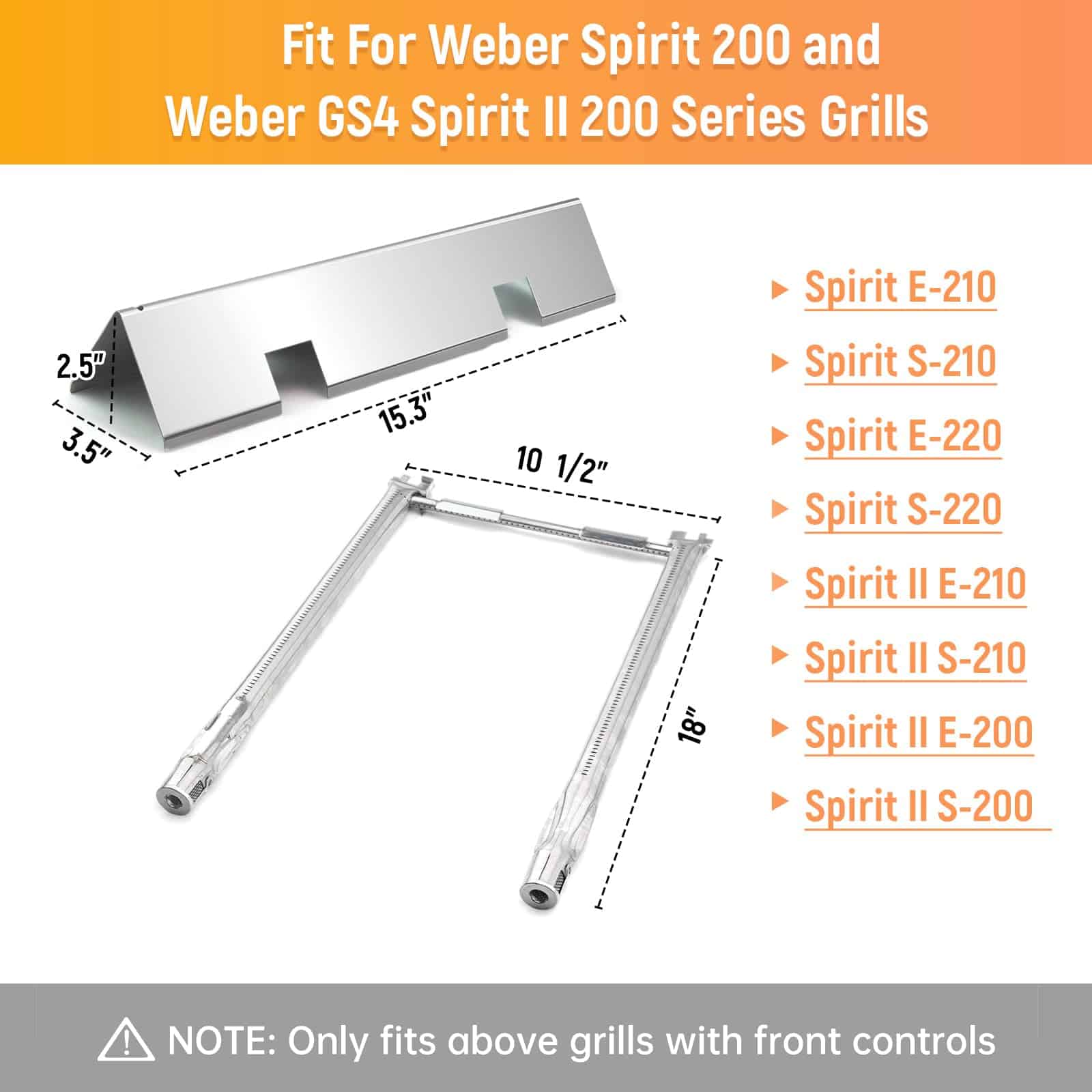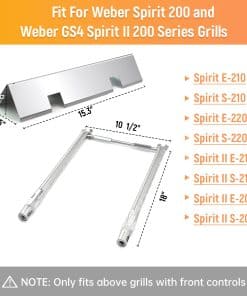 2. Compatible con las parrillas Weber Spirit II 200 Series: Weber Spirit II 200 Series, spirit ii E-210, spirit 2 E-210, spirit ii E-220, spirit 2 E-220, spirit ii S-210, spirit 2 S-210, spirit ii S-220, spirit 2 S-220 y más, repuestos para parrilla weber spirit ii e-210, repuestos para parrilla weber spirit s210, barras flavorizer para weber spirit s210, y más.