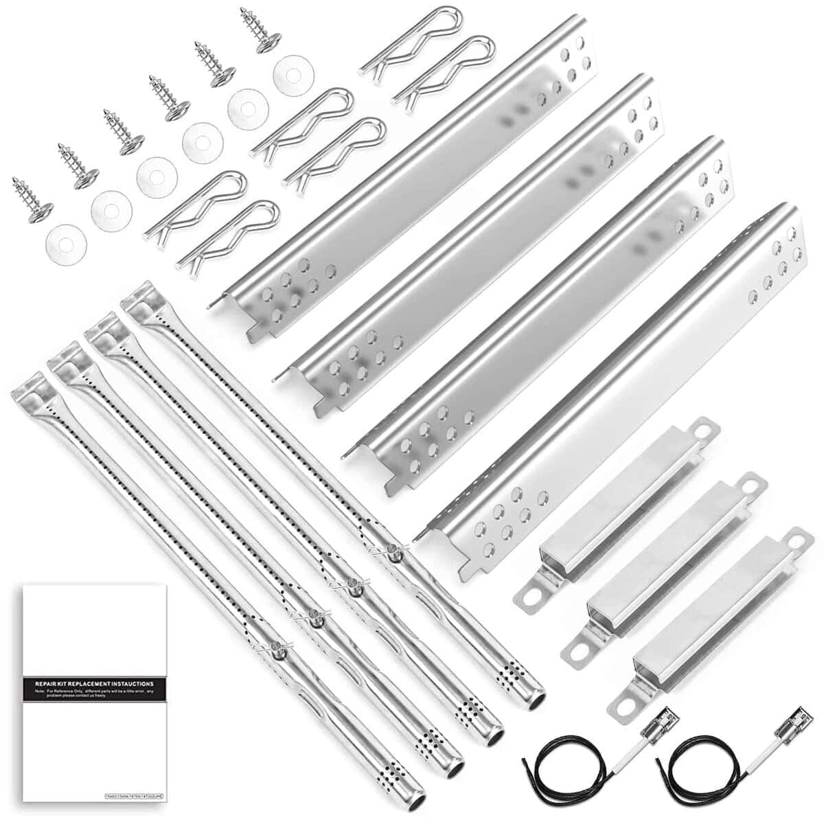 Kit de reparación superior para parrilla – Las parrillas nuevas son caras, a veces es más fácil simplemente reemplazar algunas piezas en su vieja parrilla de gas en lugar de comprar una parrilla de barbacoa totalmente nueva. Este kit de reparación de piezas de parrilla de barbacoa está hecho para adaptarse a la parrilla de gas Charbroil. Mantenga su parrilla de barbacoa funcionando como nueva con estas piezas de repuesto para parrilla de gas. Este kit incluye 4 quemadores de parrilla, 4 placas de calor, 3 tubos de transferencia ajustables, 1 instrucciones de tubo de transferencia. Los canales de transferencia ajustables con las instrucciones de OEM para aprender a ajustar correctamente los tubos de transferencia. Si necesita el encendedor de parrilla para la parrilla Charbroil, busque este ASIN «B08223X93Y».