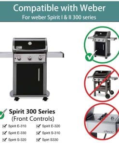 1. Amplia Compatibilidad: Piezas de parrilla Flavorizer de repuesto para parrillas de gas de la serie Weber Spirit 300 con panel de control montado en la parte delantera (año de modelo 2013 y posteriores):. Parrillas de gas Spirit E-310, Spirit E-320, Spirit E-330, Spirit S-310, Spirit S-320, Spirit S-330. También sirve para Weber 46410674, 46510001, 47510001, 46710001, 46500401, 46700401, 47700401, 46513101, 47513101, 46810001, 46800401, 47800401. NO es compatible con parrillas de gas de la serie Weber Spirit 300 con control de perilla lateral.