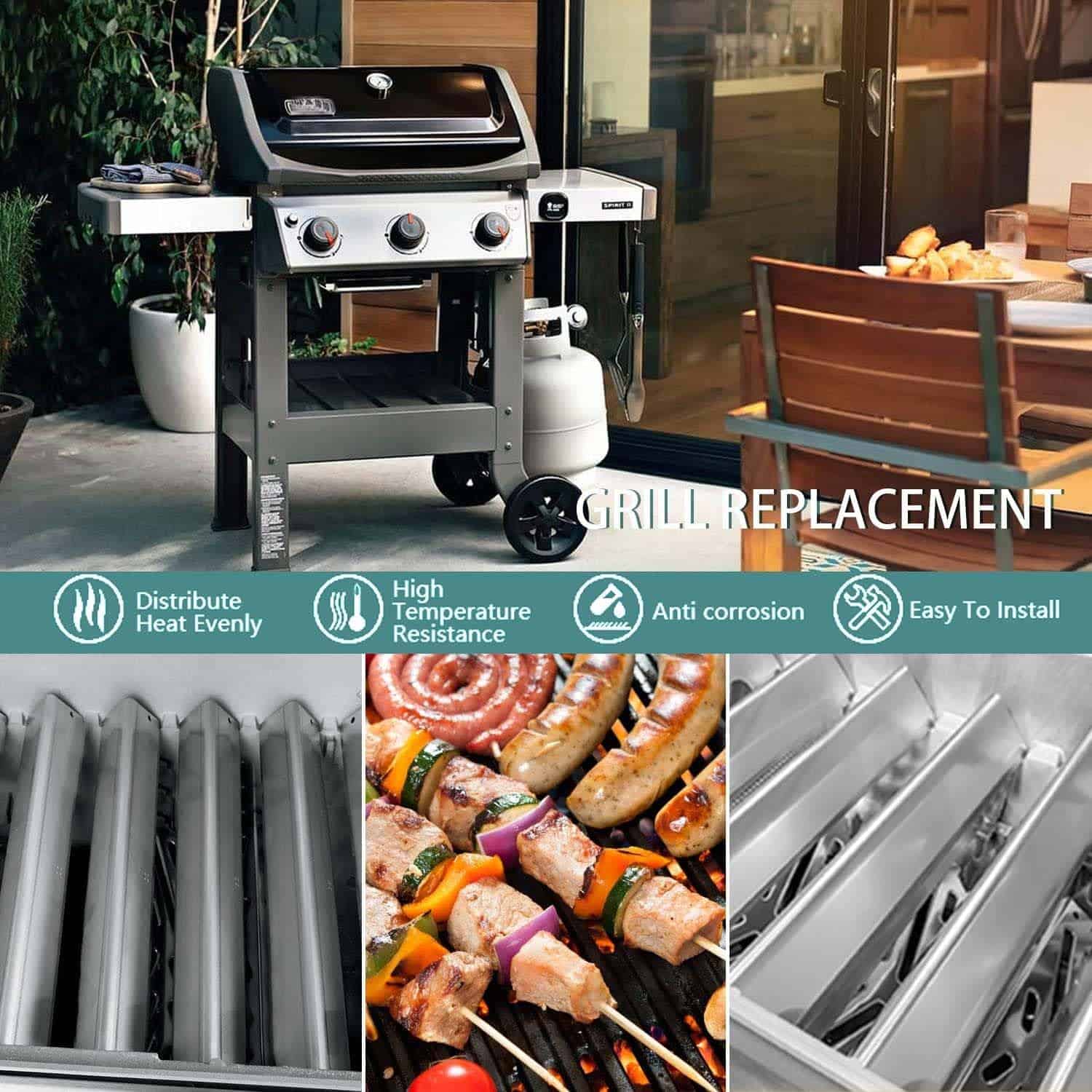 2. Barras Flavorizer más gruesas para la parrilla Weber Spirit: Hechas de acero inoxidable de alta resistencia, con fuerte resistencia a la corrosión y al calor. No se astillan ni se oxidan como las barras esmaltadas, de alta calidad y fáciles de limpiar, no es necesario reemplazar su placa calefactora de la parrilla una y otra vez.
