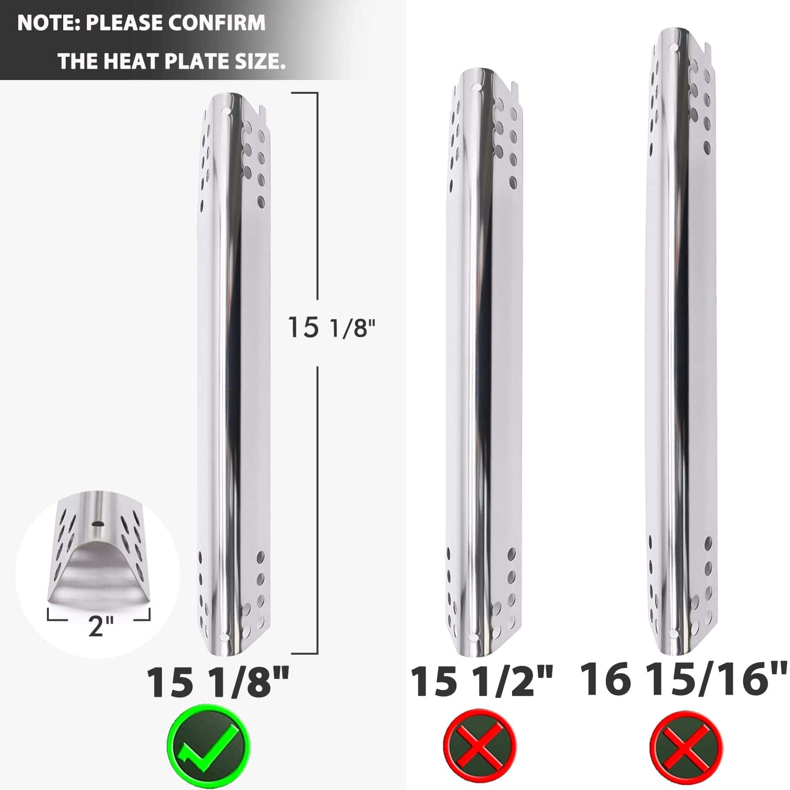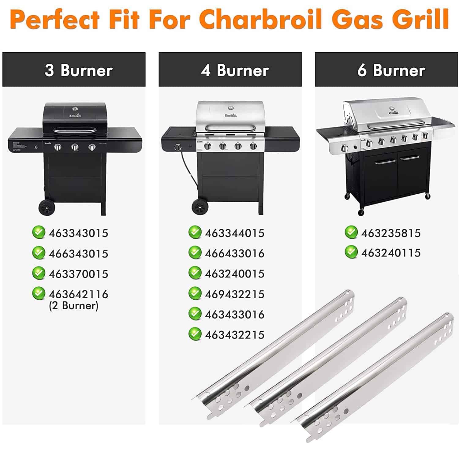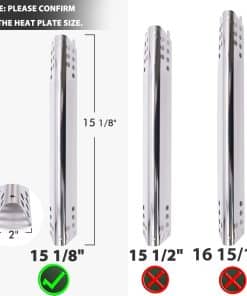 ESPECIFICACIÓN Quemador Dimensiones: 14 3/8″ x 3/5″, Material: Acero inoxidable, Número de parte original Charbroil G432-8M00-W1; Placas de Calor Dimensiones: 15 1/8″ X 2″, Material: Acero Inoxidable, Número de parte original Charbroil G458-0018-W1; Tubo de Transferencia: Ajustable de 5 a 9 pulgadas, Material: Acero inoxidable, Número de parte original Charbroil G432-001D-W1. Incluye: 6 placas de calor, 6 tubos de quemador para parrilla, 5 tubos de transferencia ajustables. Piezas de repuesto para parrillas Charbroil de 2, 3, 4 y 6 quemadores. Nota: Los modelos enumerados son solo de referencia, por favor mida el tamaño de sus piezas originales y compare con las nuestras antes de ordenar.
