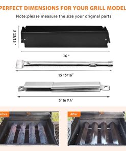 El quemador de acero inoxidable es resistente y resistente al óxido. El rendimiento perfecto prolonga la vida de tu parrilla y es duradero. La placa calefactora de acero porcelanizado protege el quemador de que la comida obstruya el orificio, la potencia de fuego es uniforme y se aumenta la deliciosidad de la comida. El tubo cruzado ajustable de acero inoxidable es adecuado para cualquier longitud de 5″ a 9.5″, con instrucciones OEM para aprender a ajustar correctamente el tubo horizontal. Se adapta a la mayoría de las parrillas.
