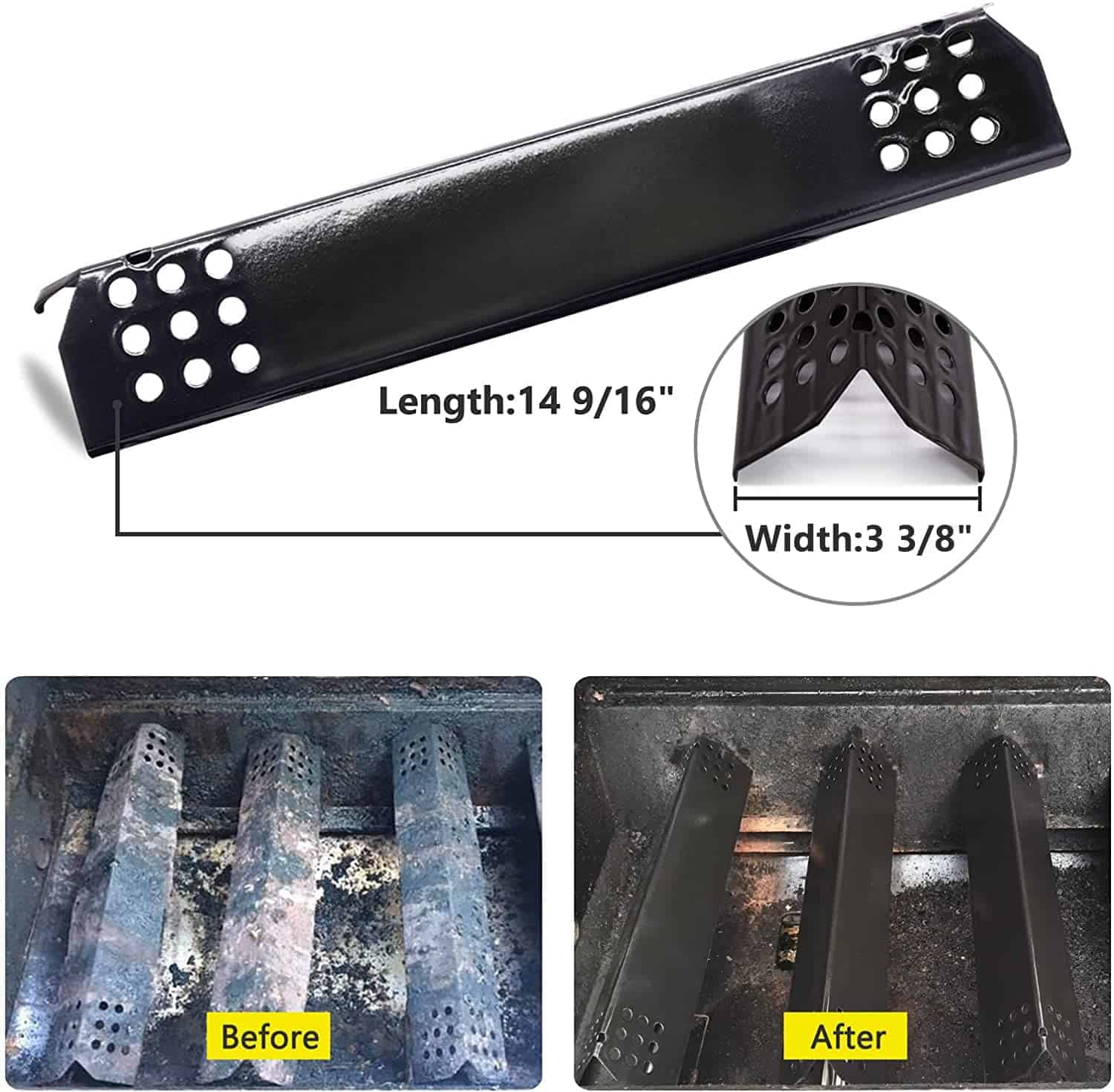 Especificaciones: Placas de calor: 14 9/16″ x 3 3/8″, Material: Acero Porcelanizado. Quemadores: 14 7/8″ x 1″, Material: Acero Inoxidable. Longitud de los cables de encendido: 85cm. Compatible con varios modelos de parrillas. Hecho con materiales de alta calidad para una experiencia de barbacoa segura y duradera.