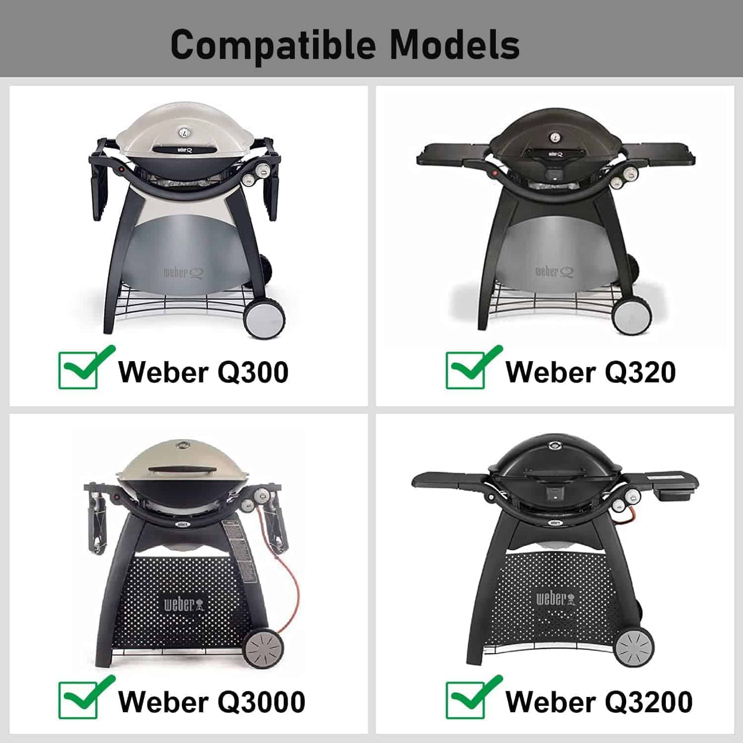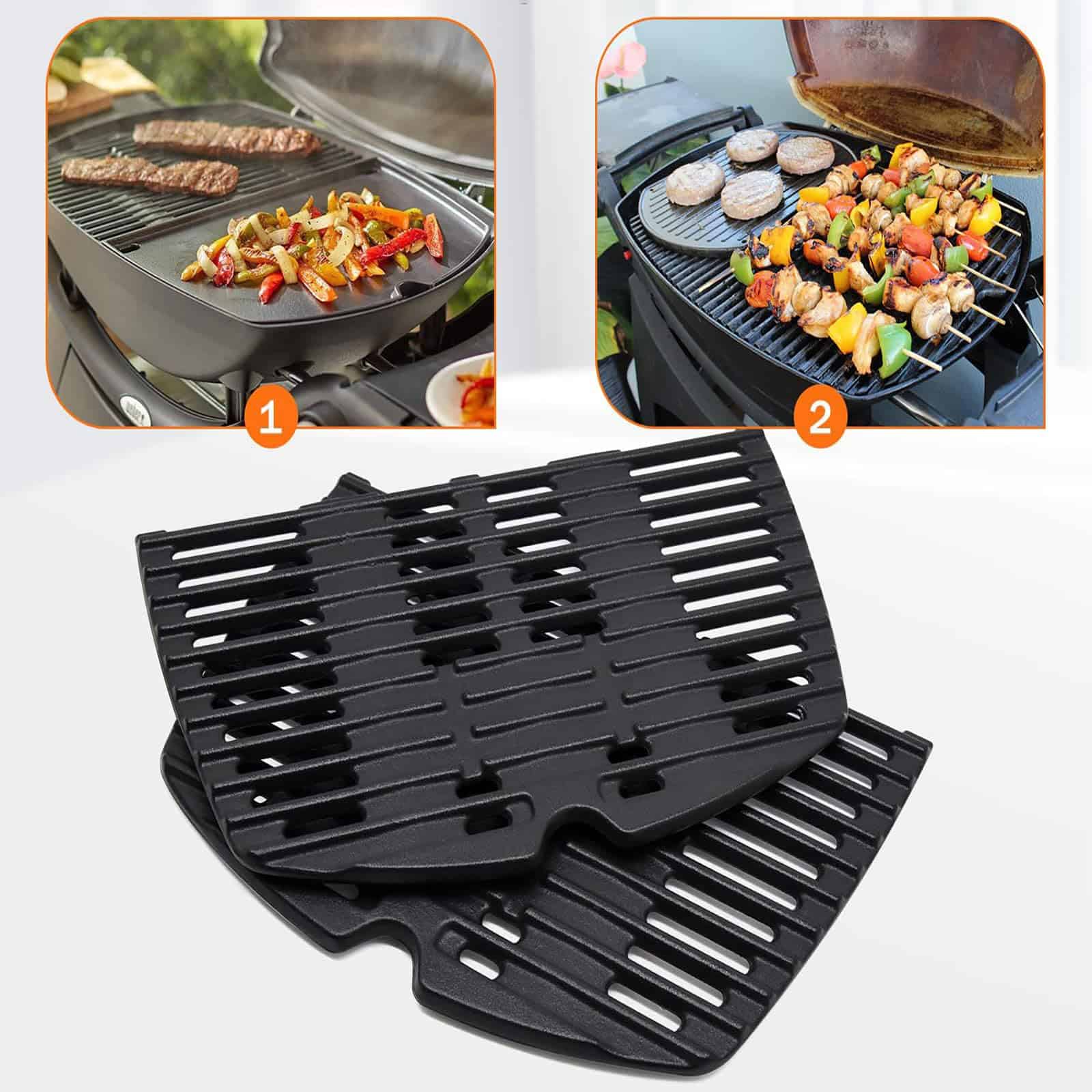 1. Se ajusta perfectamente a las rejillas de la parrilla para Weber Q300 Q320 Q3000 Q3200 Series. Compatible con las partes de repuesto de rejillas de cocina para Weber 586002,5760001,404341. Número de parte original de reemplazo para la parrilla Weber 7646,7584. Consejos: Por favor, verifique el tamaño de su parte original antes de ordenar y compárelo con la parte de repuesto para garantizar un ajuste perfecto.